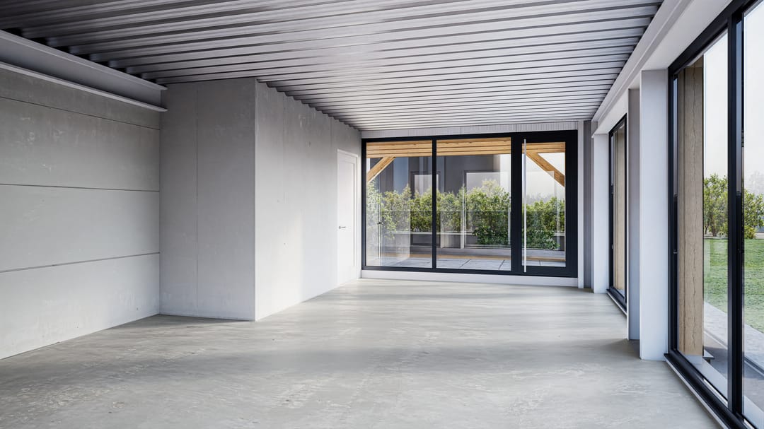 • Betonnen verdiepingsvloer;