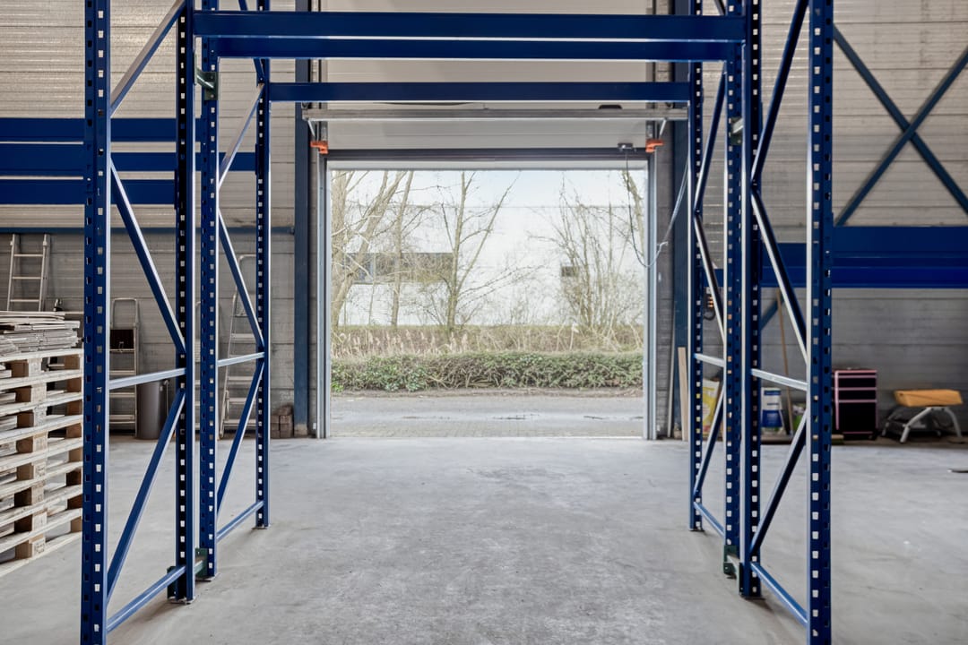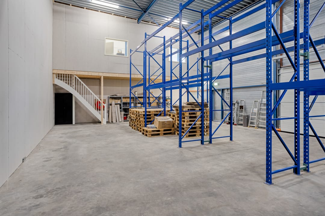 - Overheaddeuren, betonvloer, toilet, pantry en te openen ramen