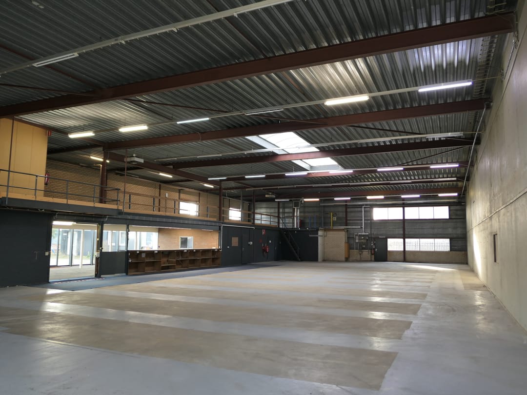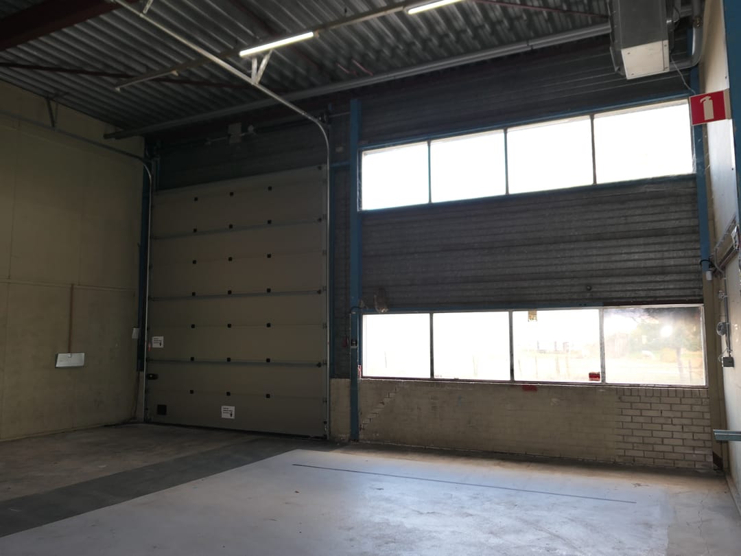 - Overheaddeuren, krachtstroom, betonvloer, heater, toilet, pantry en te openen ramen
