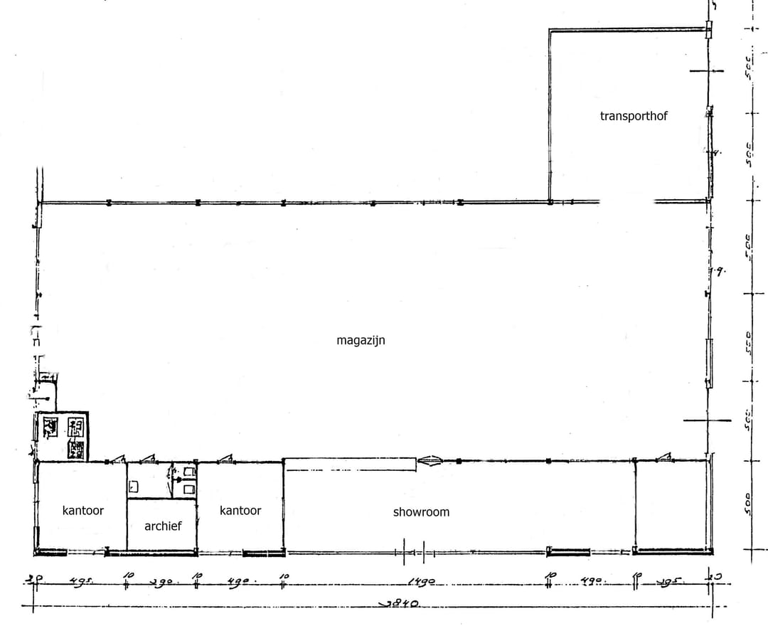 Begane grond: showroom/publieksruimte, kantoren, was en toiletruimte, magazijn/bedrijfsruimte.