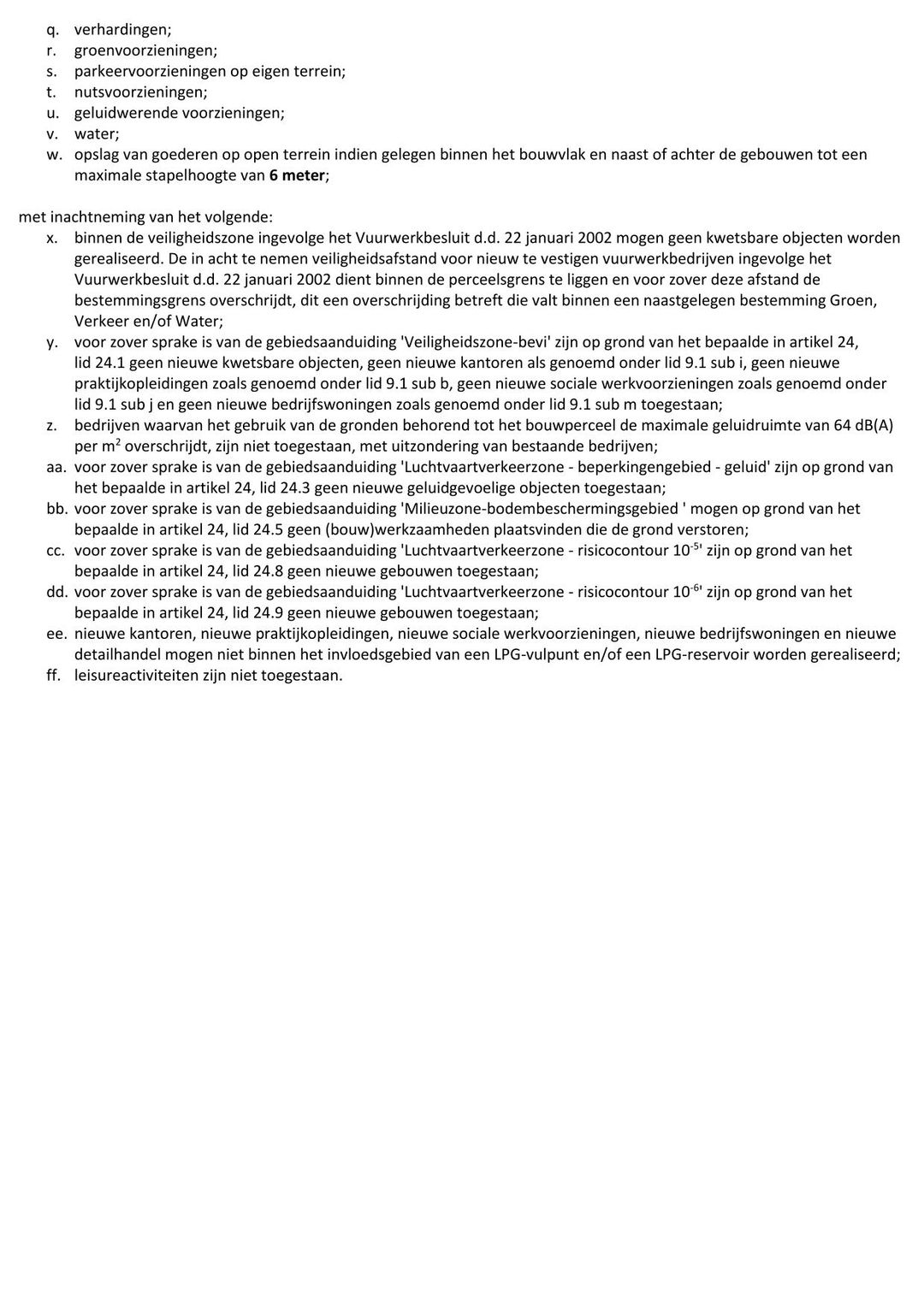 - bedrijven, behorende tot categorie 1 t/m 4.2, zoals genoemd in de Staat van bedrijfsactiviteiten - 5, met dien verstande dat het gebruik van de gronden per bouwperceel een maximale geluidruimte tot gevolg heeft van 64 dB(A) per m2 ;