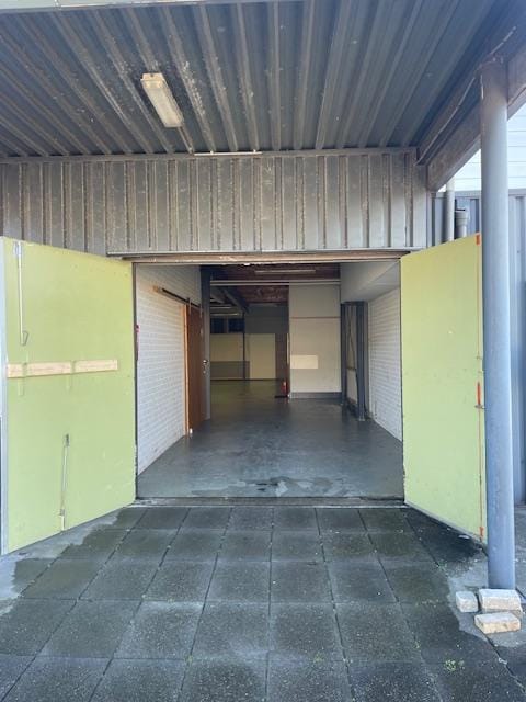 magazijn/opslagruimte met dubbele openslaande deuren en met een gedeelde entree aan de voorzijde.