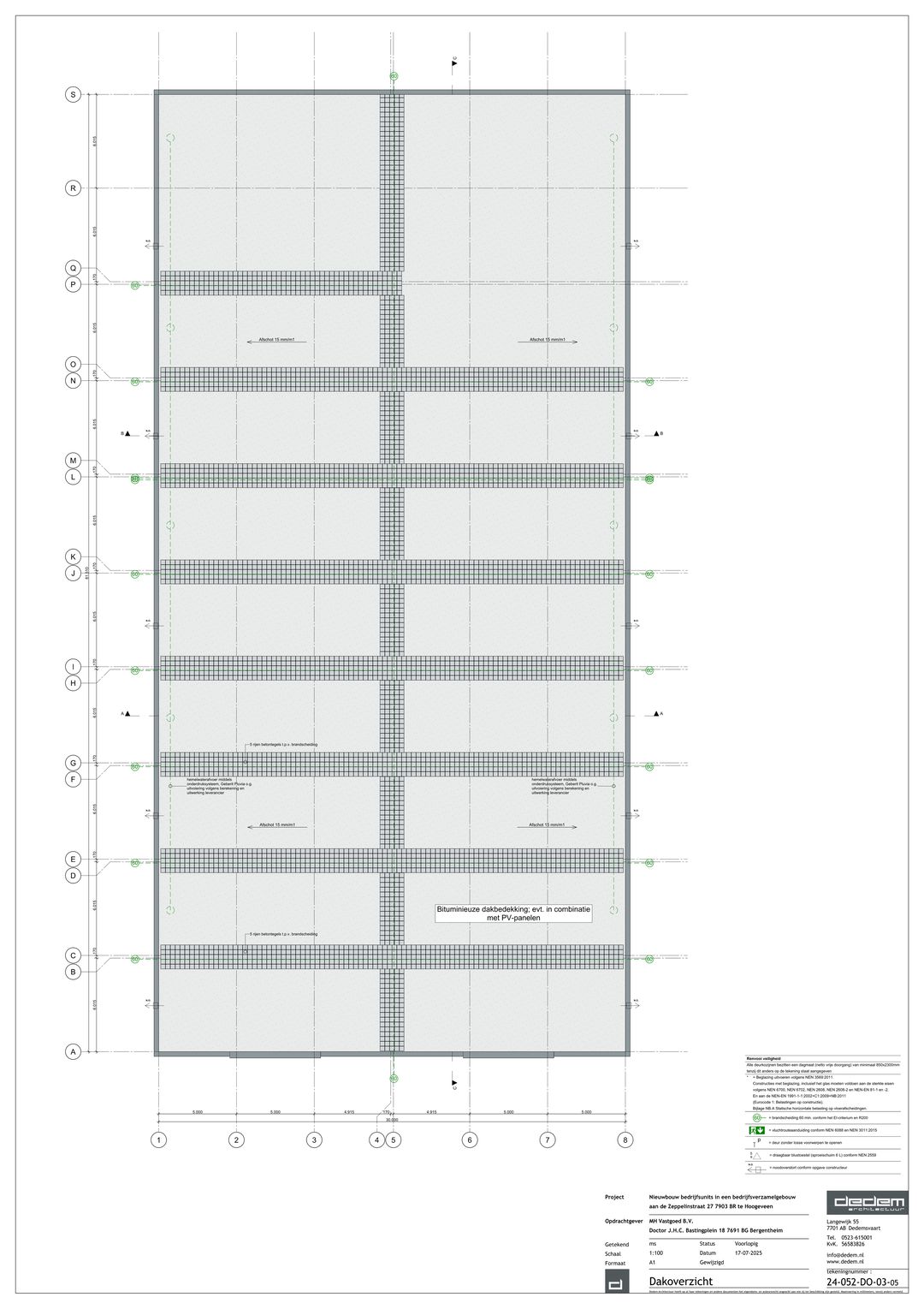 - stalen spantconstructie op kleur gespoten Ral 9005, 1 laags systeem ca 60 µm