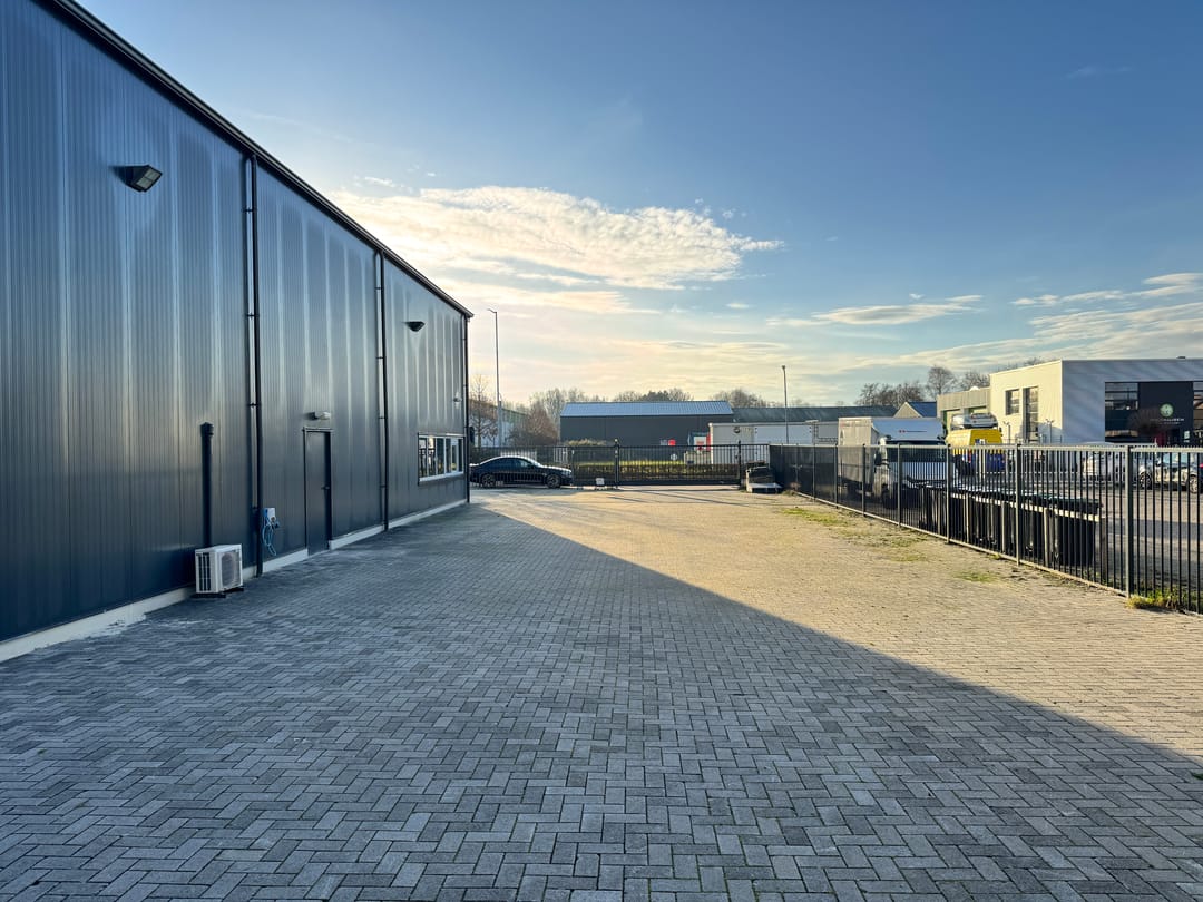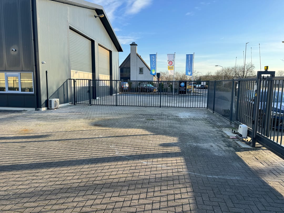 Voorzieningen: Camera beveiliging, elektrisch schuifhek, elektrische overhead deuren, alarmsysteem en airco in de kantoorruimtes.