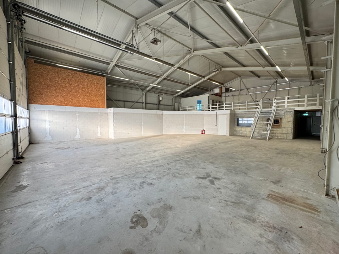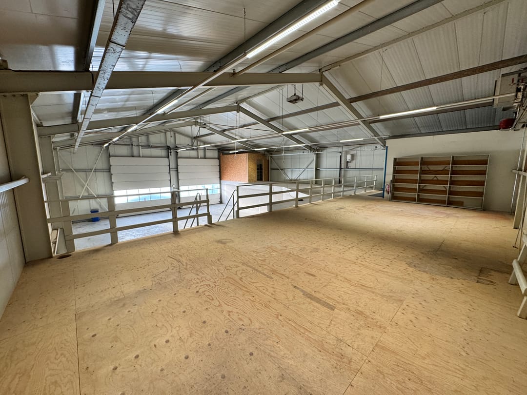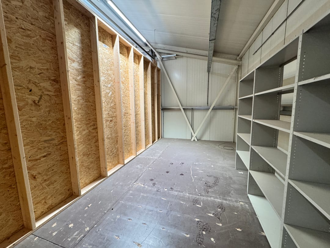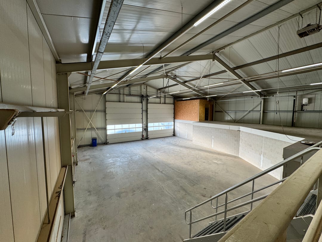 - Lichtstraten, overheaddeuren, krachtstroom, betonvloer, toilet en pantry