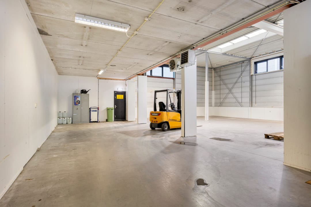 - Airconditioning, lichtstraten, overheaddeuren, krachtstroom, betonvloer, heater, toilet, pantry en te openen ramen