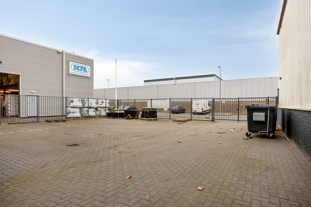 Het object beschikt over een geheel bestraat, omheind en afgesloten buitenterrein, met mogelijkheden om te parkeren op eigen erf, of aan de overzijde op de openbare weg.