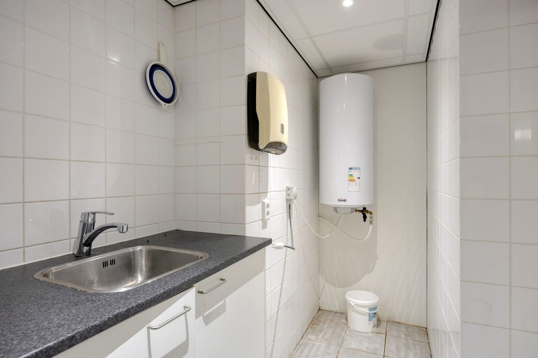 - douchecabine met wastafel en een warmwater boiler