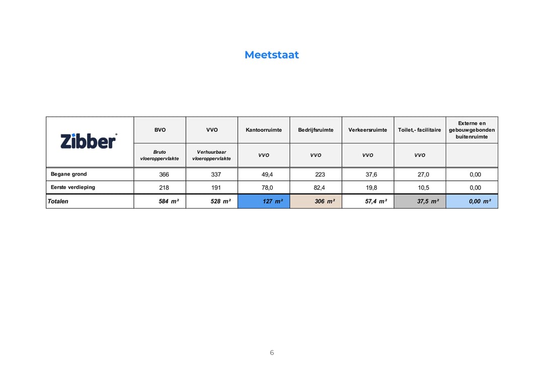 De totale oppervlakte bedraagt circa 528 m² en is als volgt verdeeld: