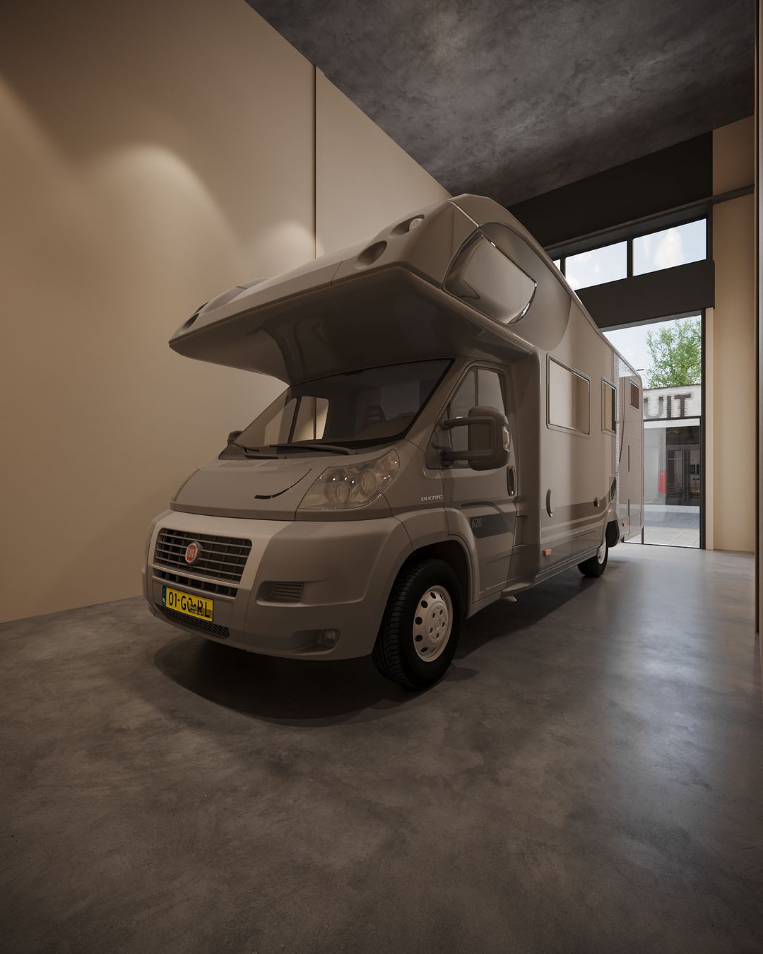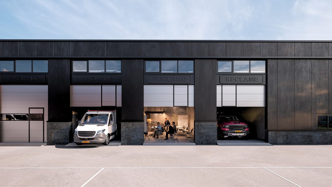 - Boven de overheaddeur wordt een raampartij geplaatst voor daglichttoetreding;