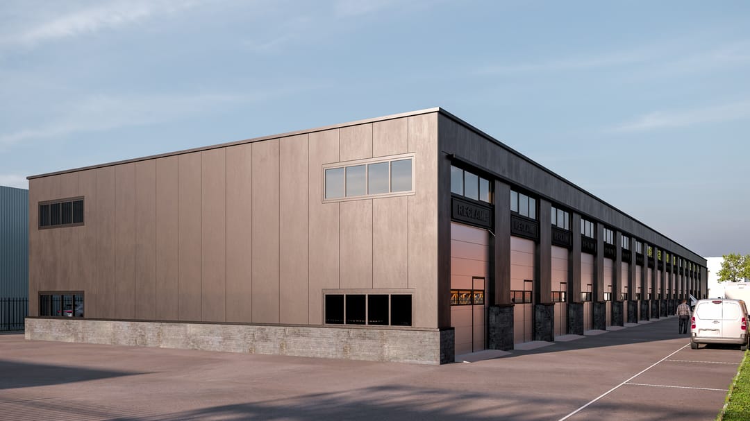 - Elke unit wordt voorzien van een stalen geïsoleerde overheaddeur in de maatvoering 3.500 x 4.000 mm óf 3.500 x 3.000 mm (mogelijk tot medio januari in overleg met makelaar). Uitvoering in RAL 9006;