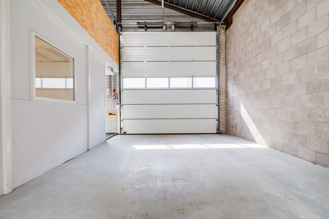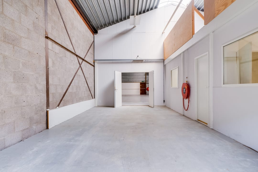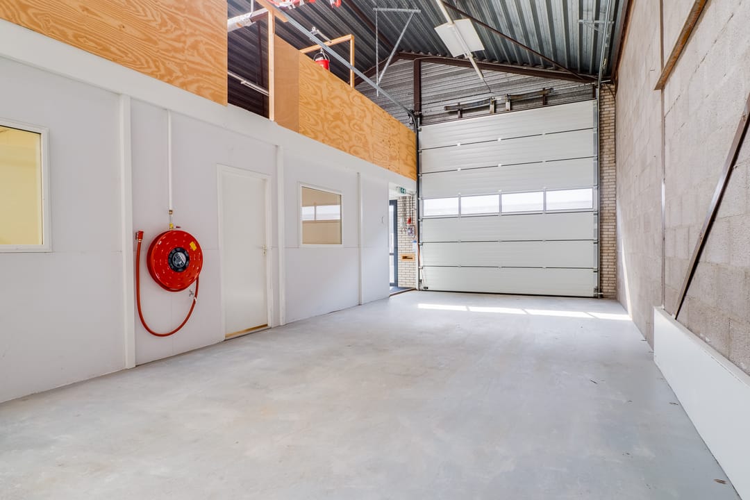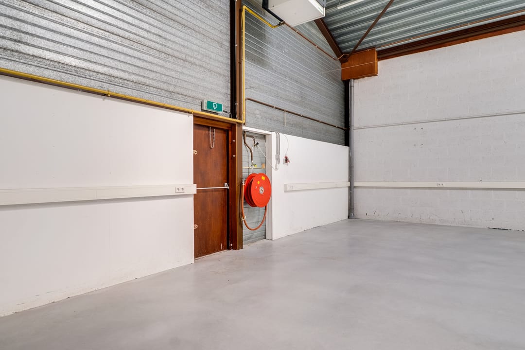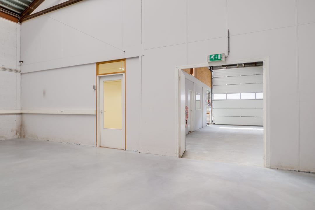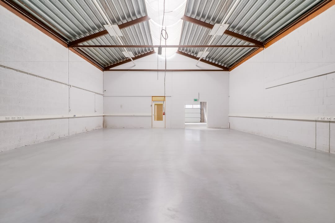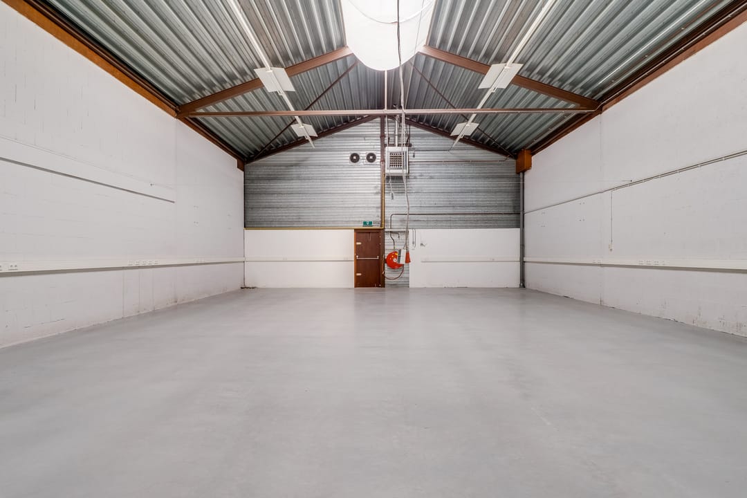 - Overheaddeuren, krachtstroom, betonvloer, toilet, pantry en inbouwarmaturen