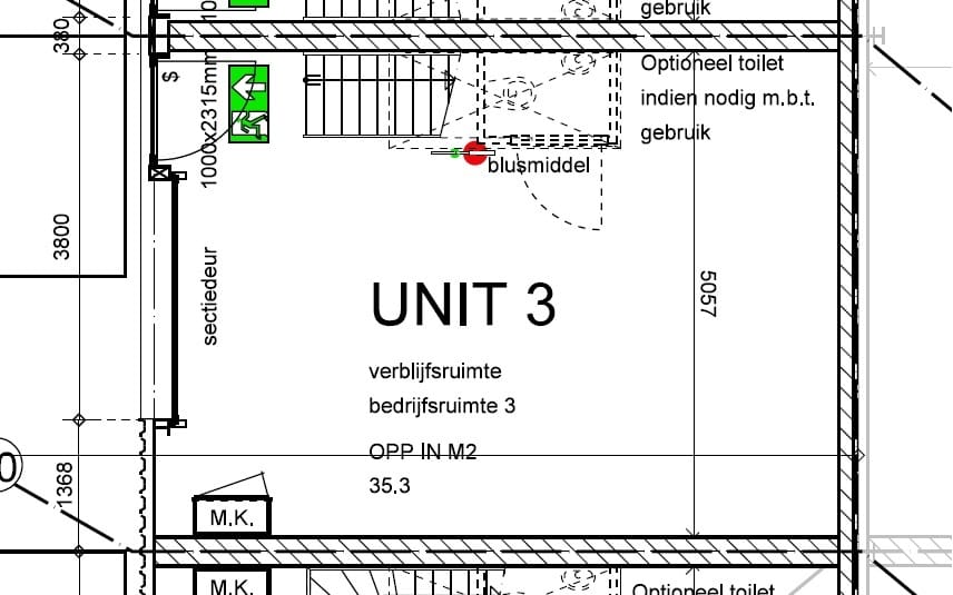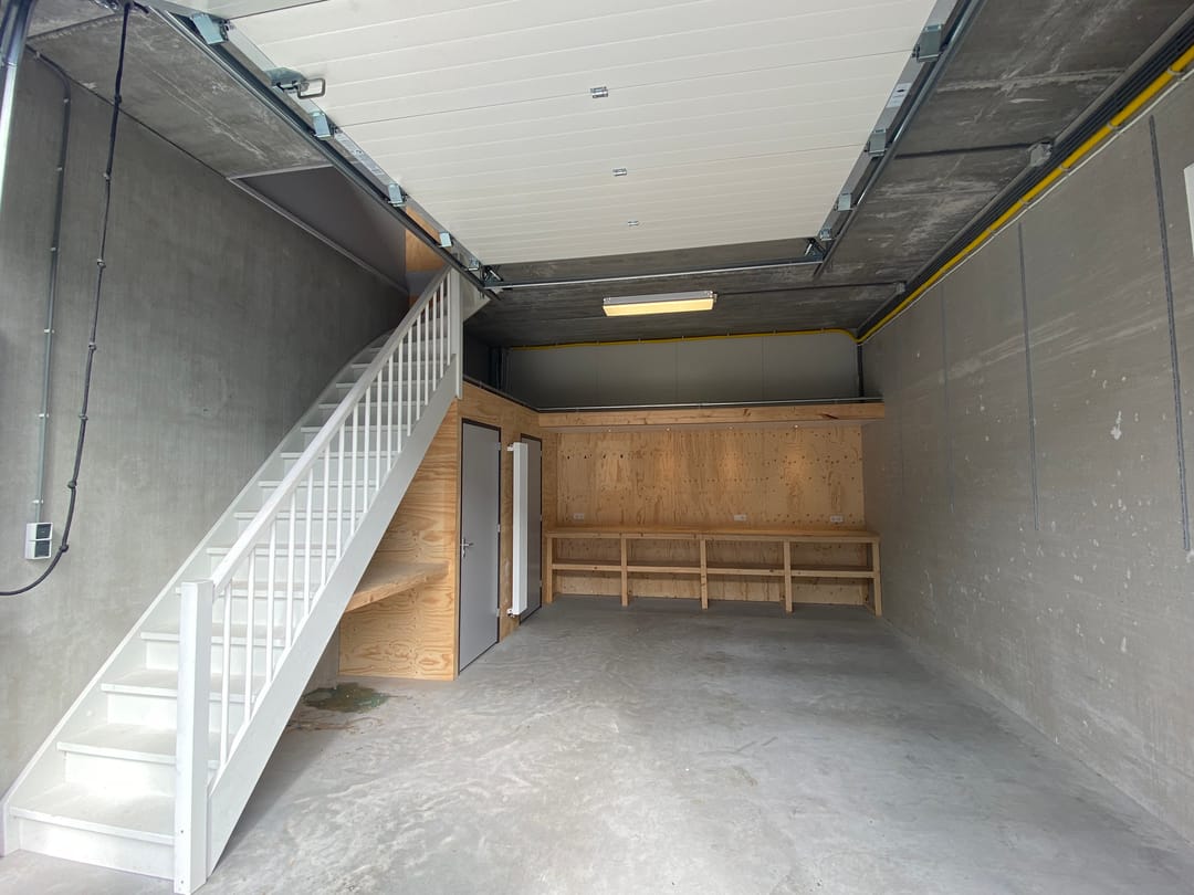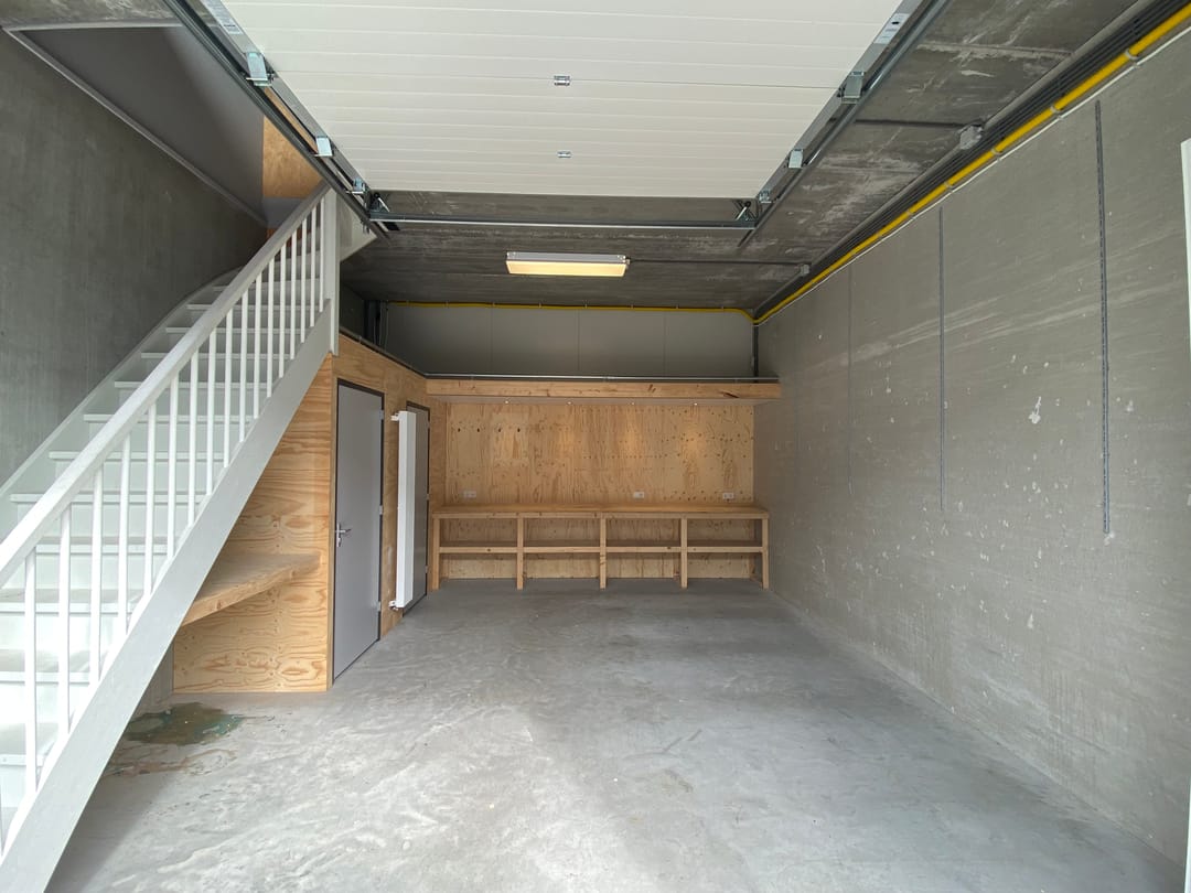 - Overheaddeuren, toilet, pantry en te openen ramen