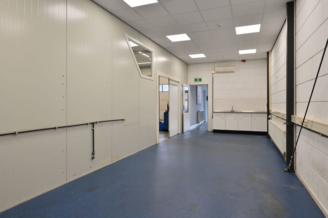 - Overheaddeuren, betonvloer, heater, toilet, pantry en airconditioning