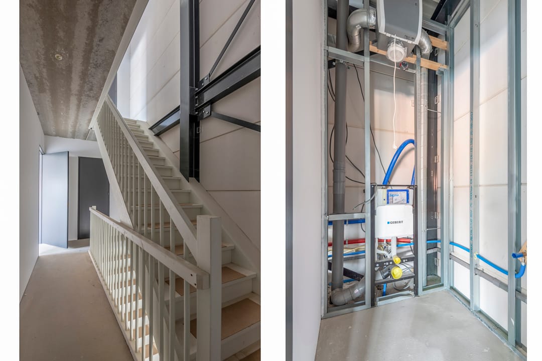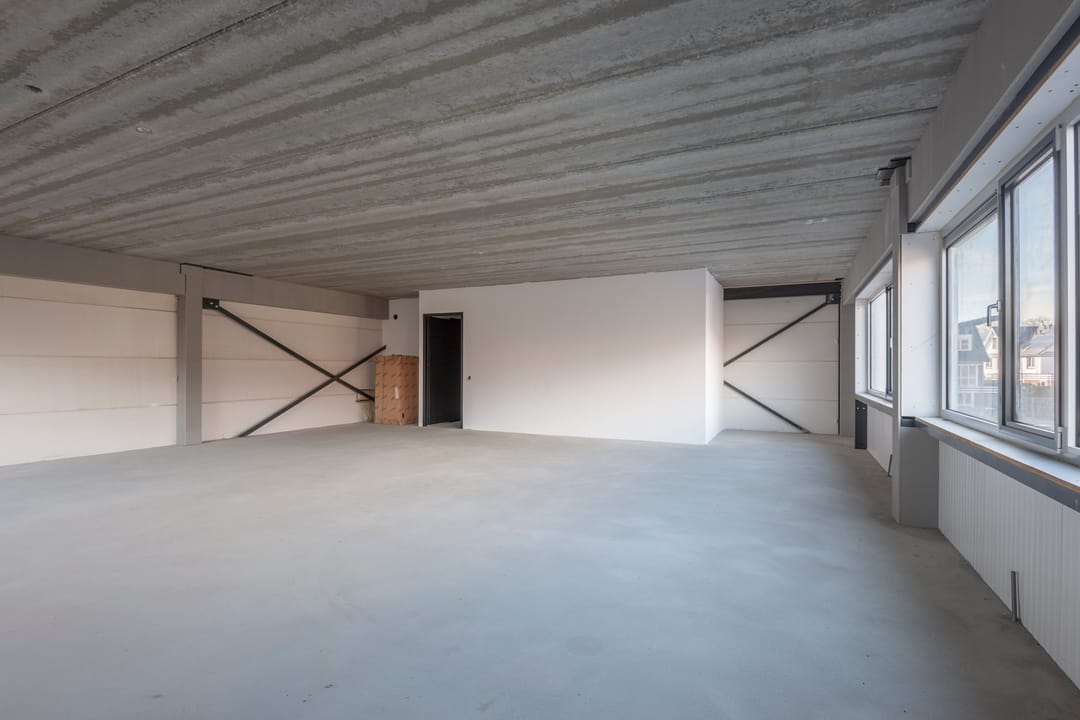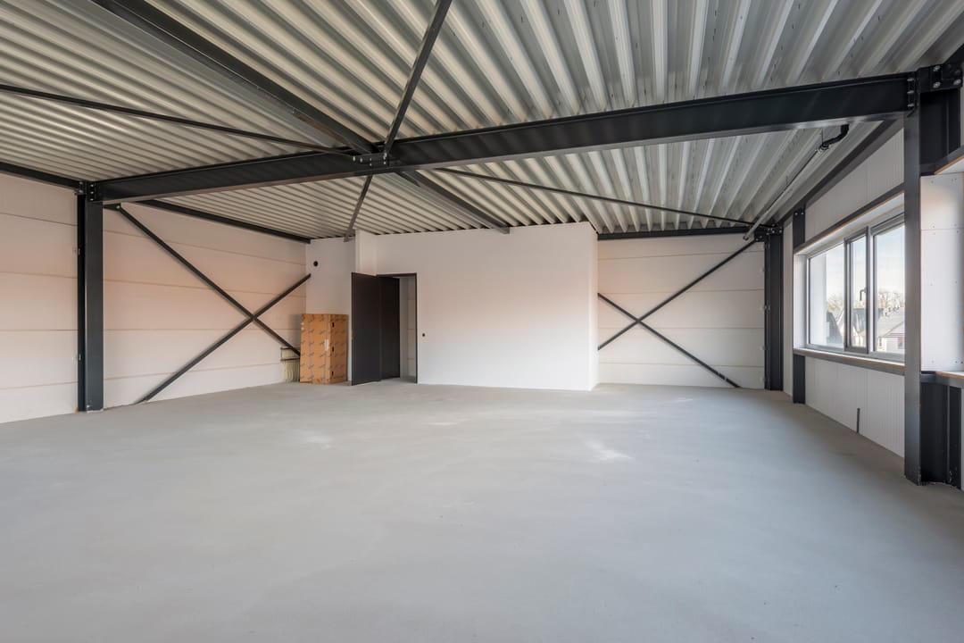 - Overheaddeuren, betonvloer, toilet en te openen ramen