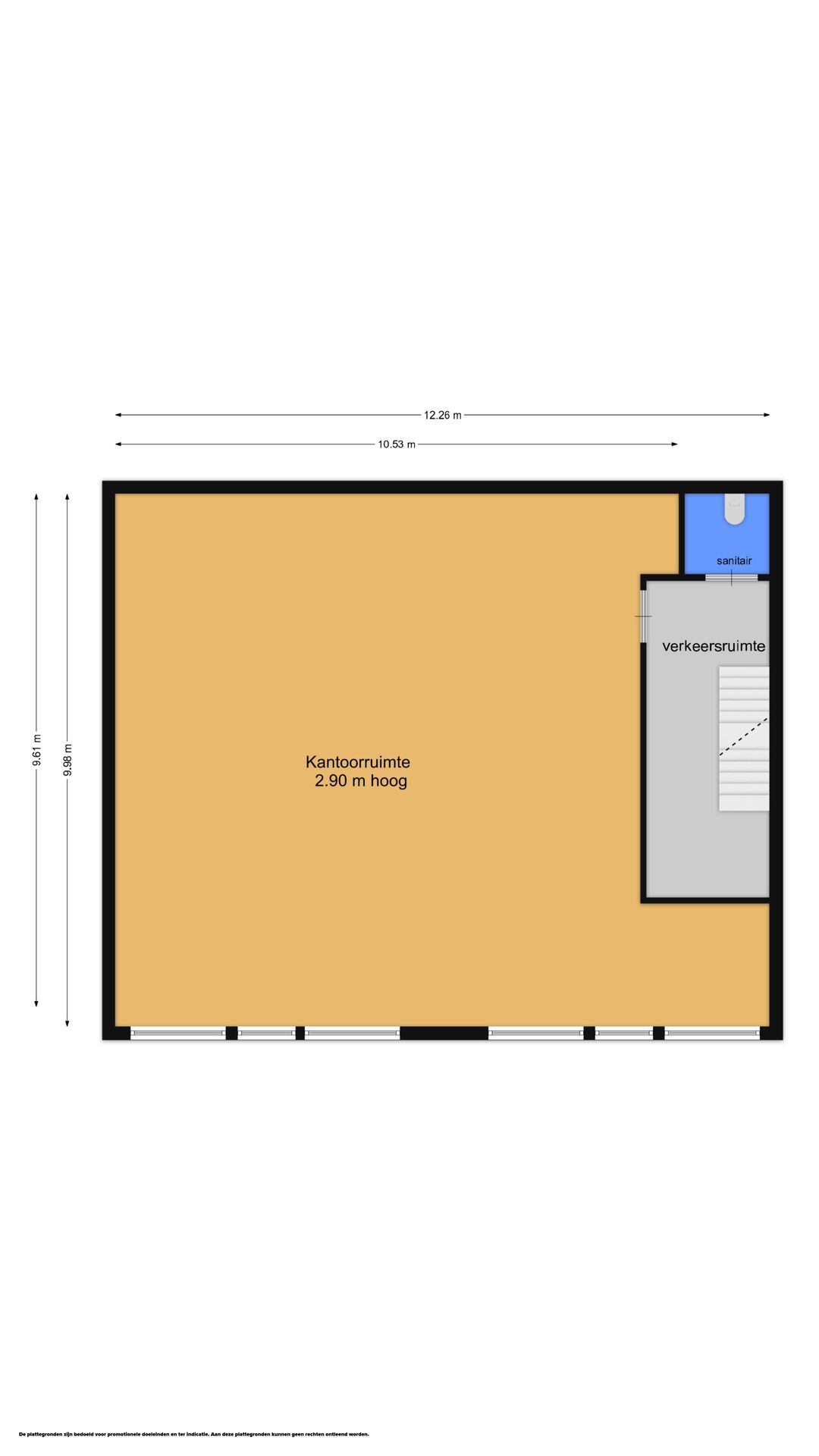 De eerste verdieping (circa 116 m² VVO) leent zich uitstekend voor gebruik als kantoorruimte en biedt voldoende mogelijkheden voor een praktische indeling met werkplekken, een vergaderruimte en/of ondersteunende functies. De ruimte wordt in huidige staat opgeleverd en is voorzien van een separate toiletruimte.