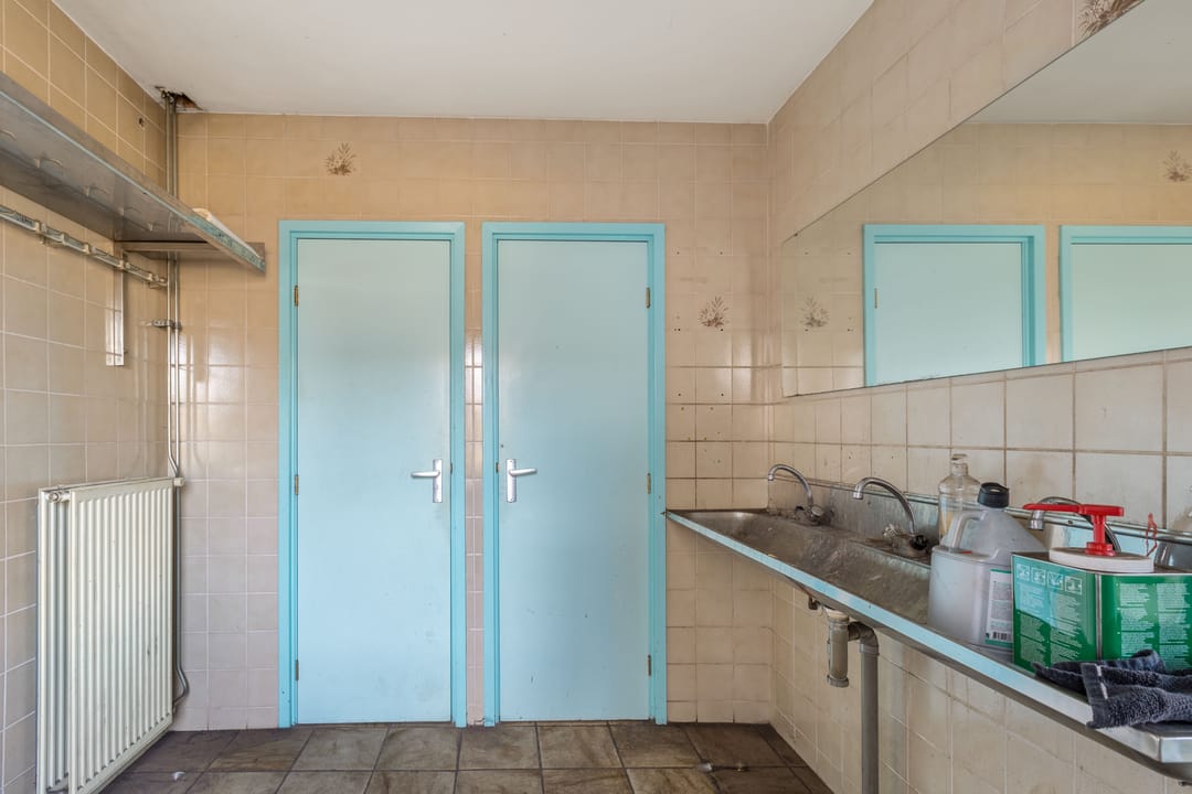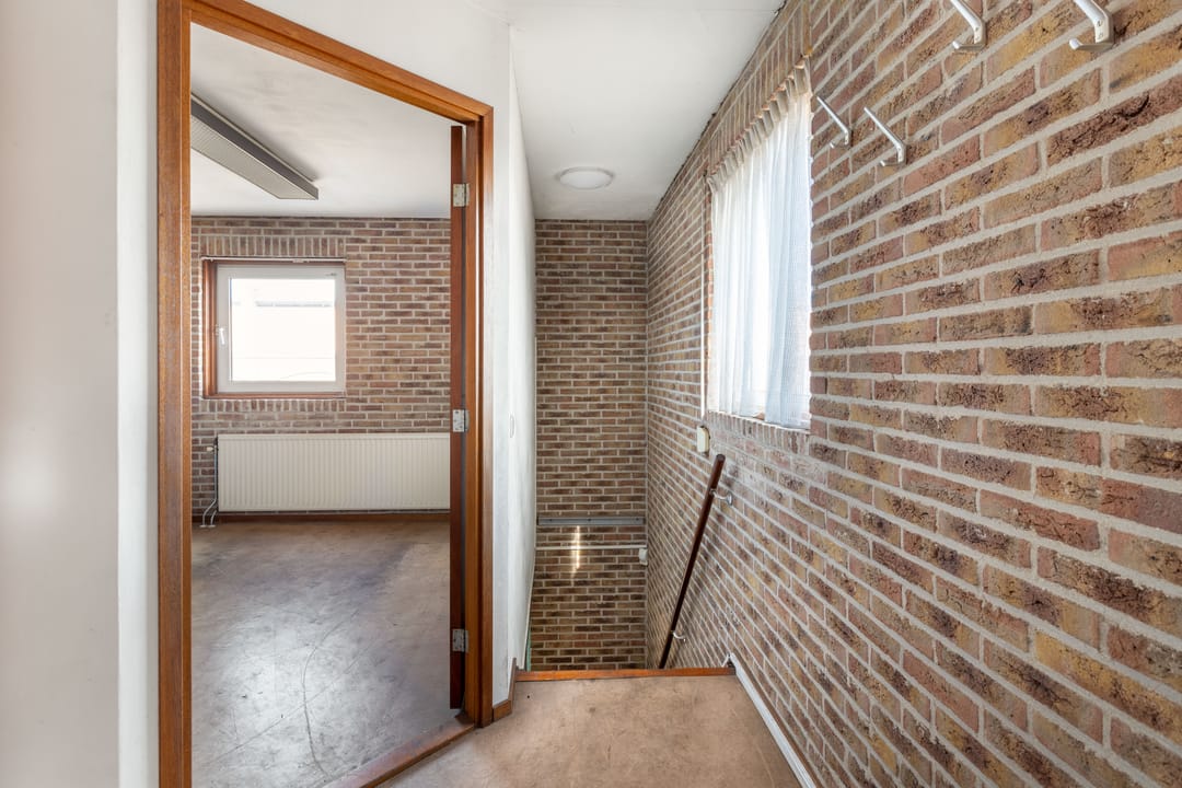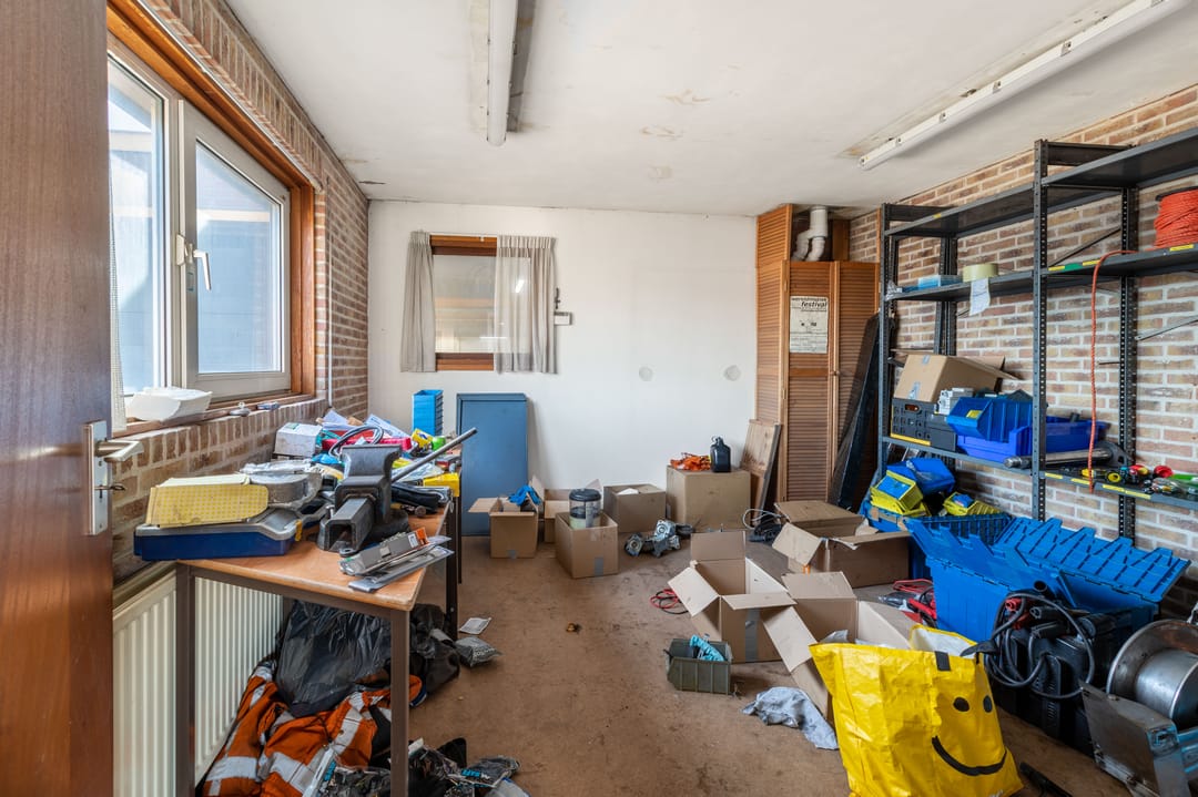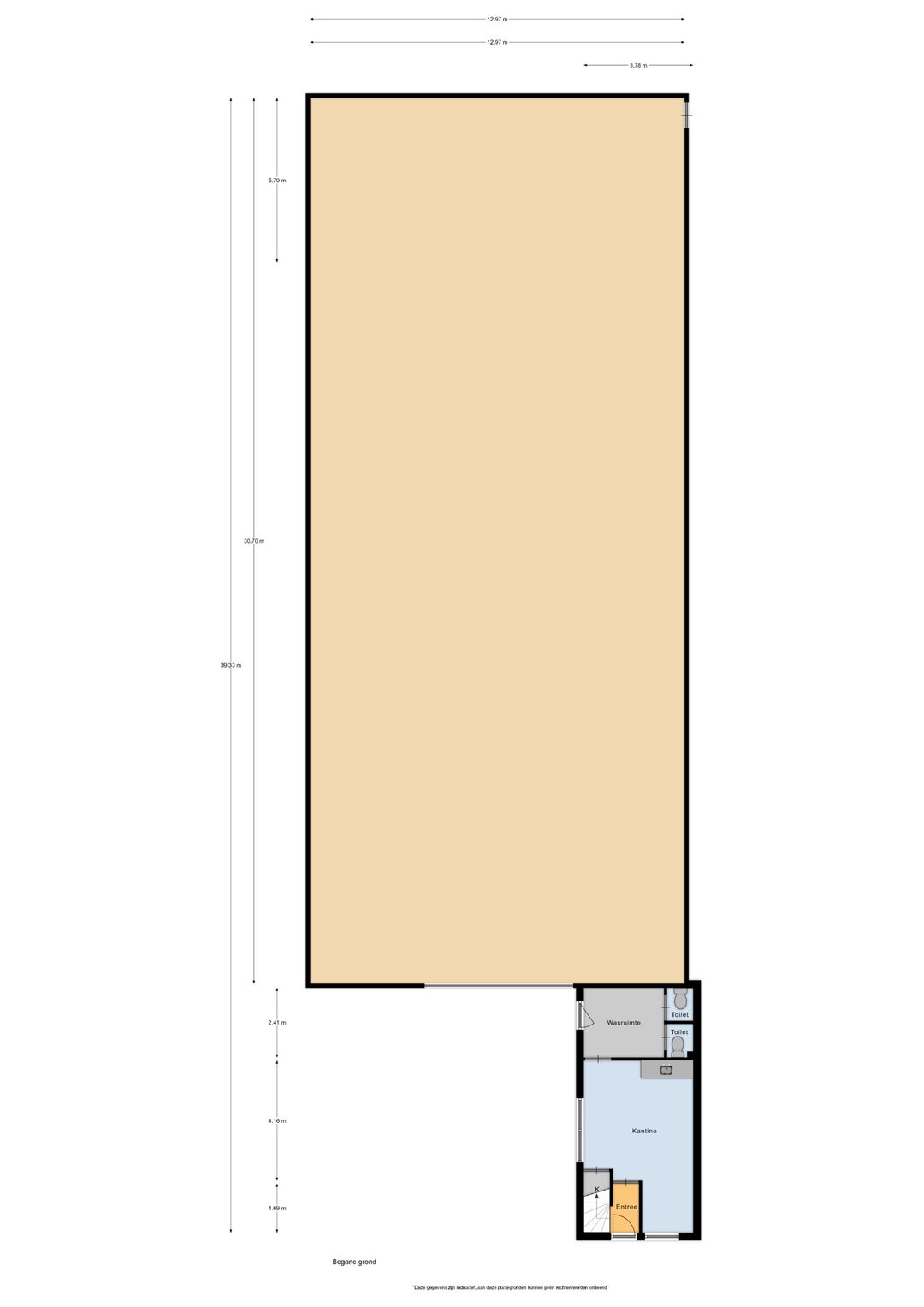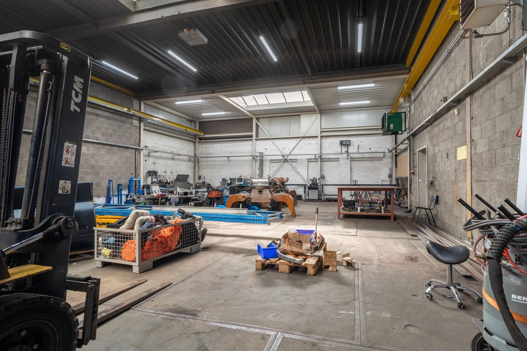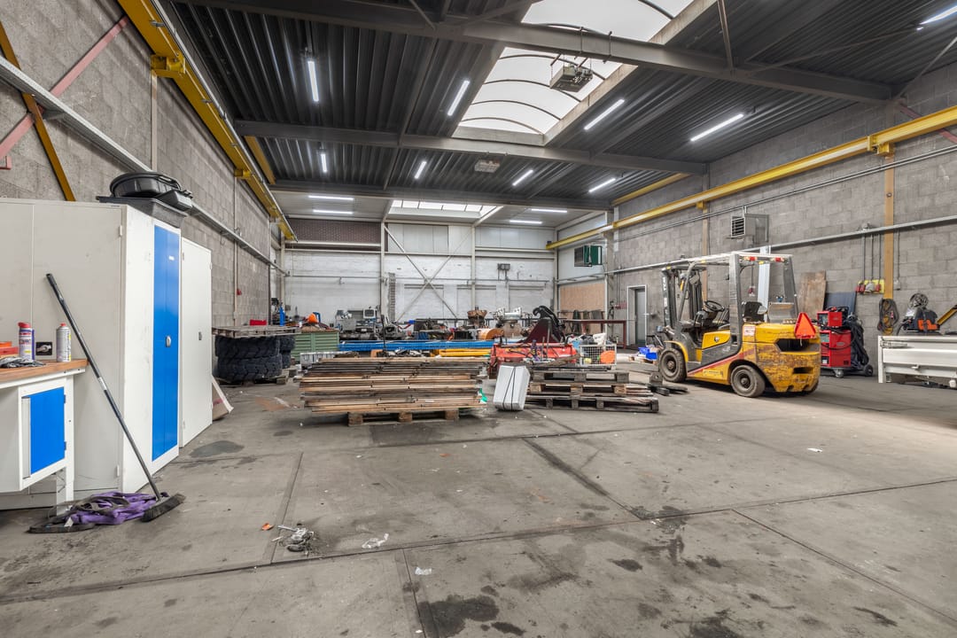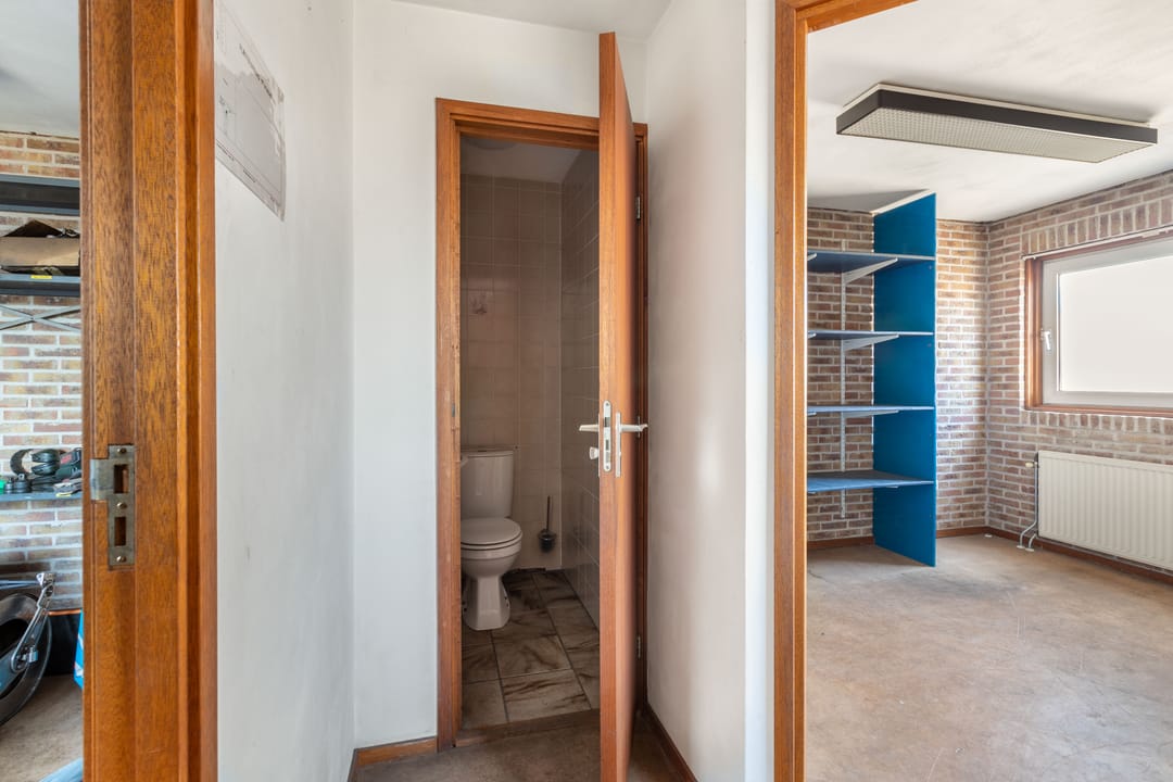 Entree, hal, kantine, 2e hal met toilet en kast. Trap naar 1e verdieping met overloop, toilet en 2 kantoorkamers. Bedrijfshal
