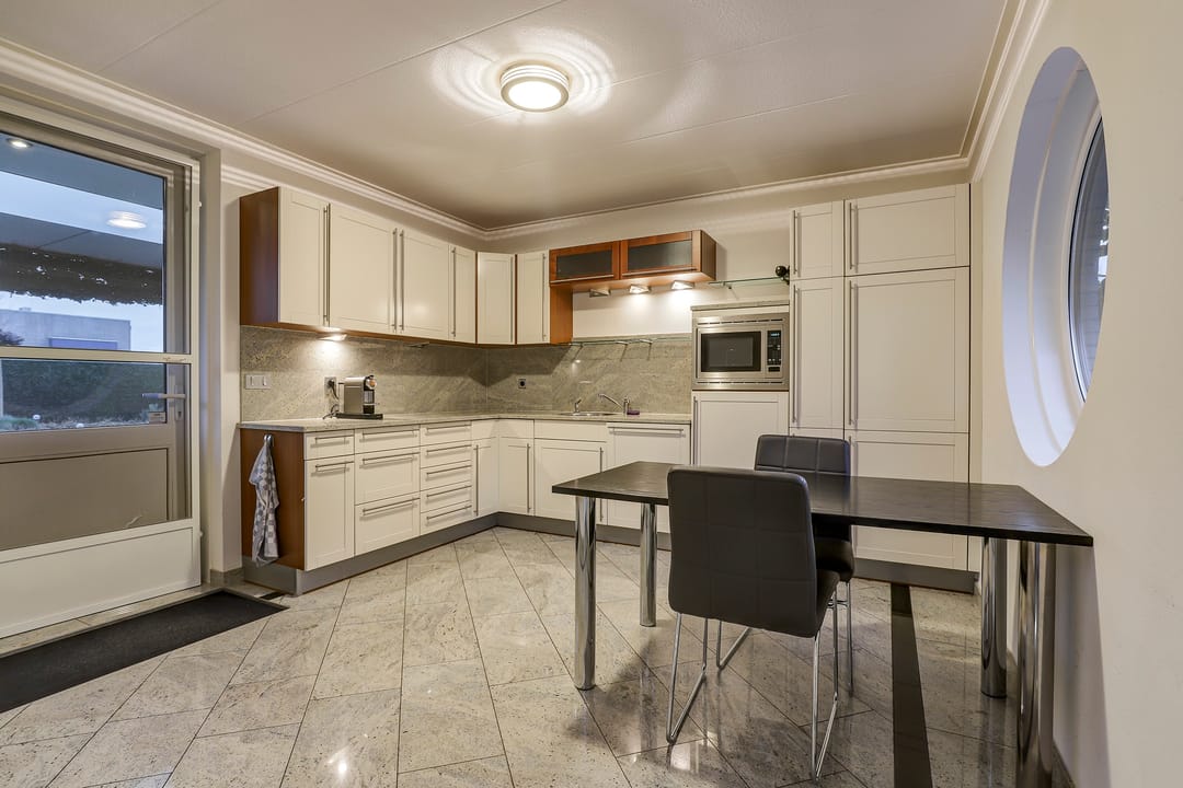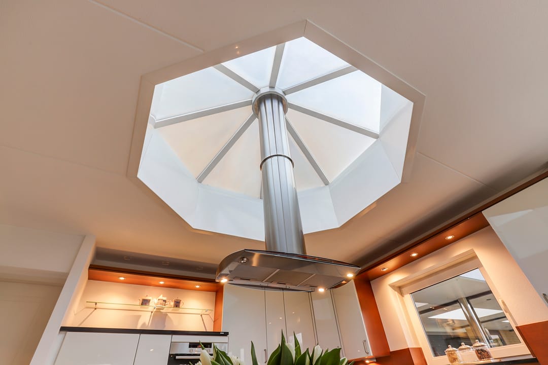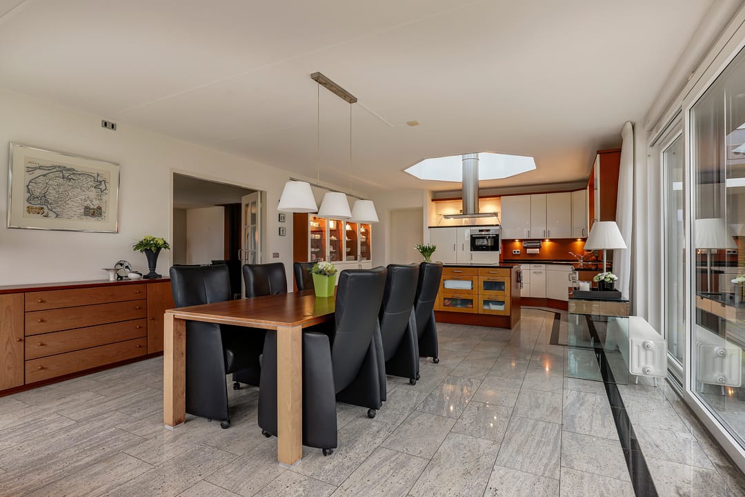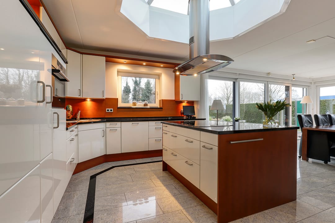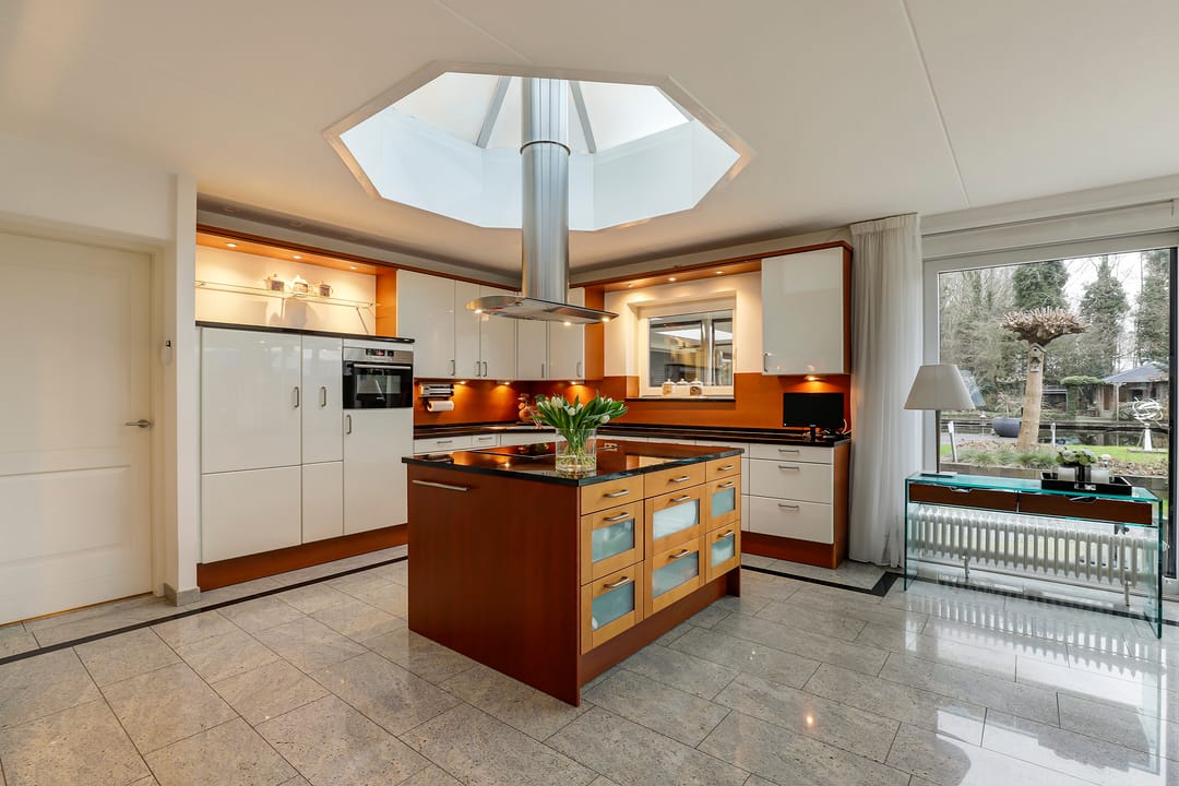 - Luxe keuken met lichtkoepel en schuifpui naar veranda;