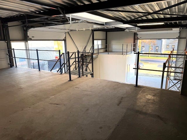 Unit beschikt over 3 overhead deuren waarvan 2 deuren 358 cm breed en 482 cm hoog. De voorste roldeur is breder.