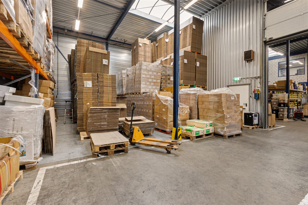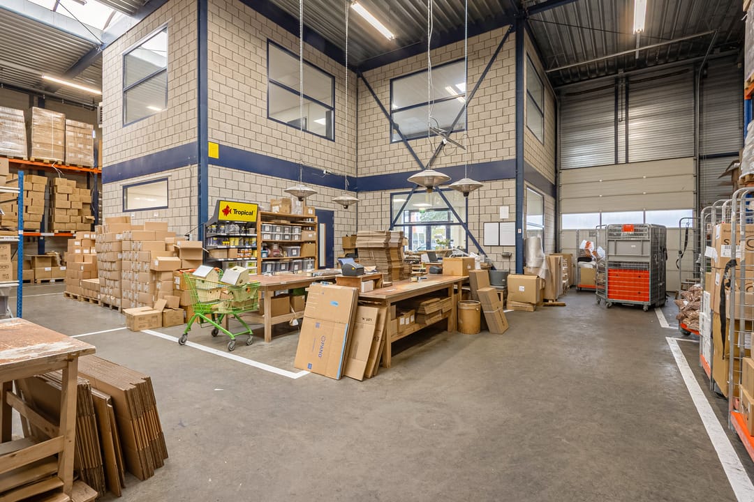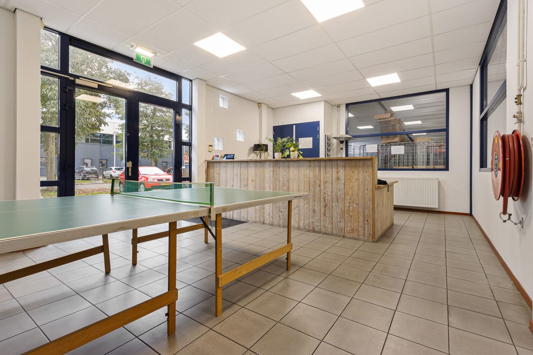 Aan de voorzijde bevindt zich de entree met receptie, toiletgroep en toegang tot de eerste bedrijfshal. Deze hal heeft een U-vormige indeling en is voorzien van twee overheaddeuren, een vrije hoogte van ca. 6,86 meter en twee lichtstraten die zorgen voor veel daglicht.