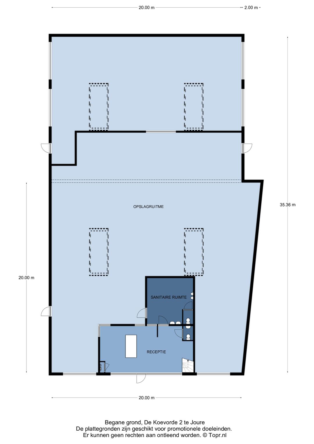 Deze informatie is geheel vrijblijvend en niet meer dan een uitnodiging tot het doen van een voorstel. Aan deze informatie kunnen geen rechten worden ontleend. Onderhandelingen en verkoop/ verhuur vinden dan ook pas plaats onder het uitdrukkelijke voorbehoud van het verkrijgen van definitieve goedkeuring van onze opdrachtgever.