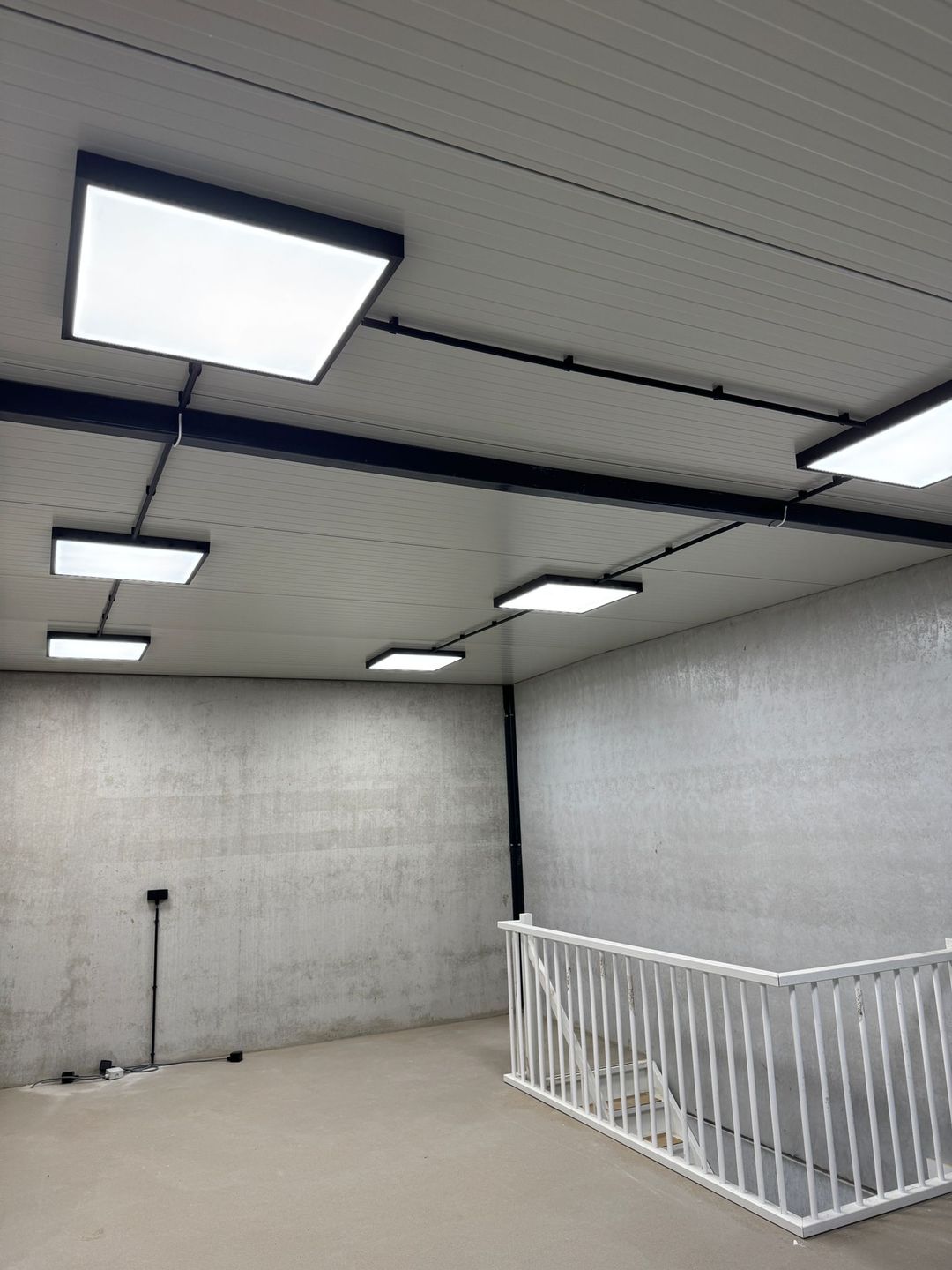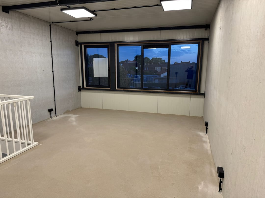 - Voorzieningen: elektrische roldeur (2,80m x 3,20m), loopdeur, vaste trap, water & elektra tot in de meterkast