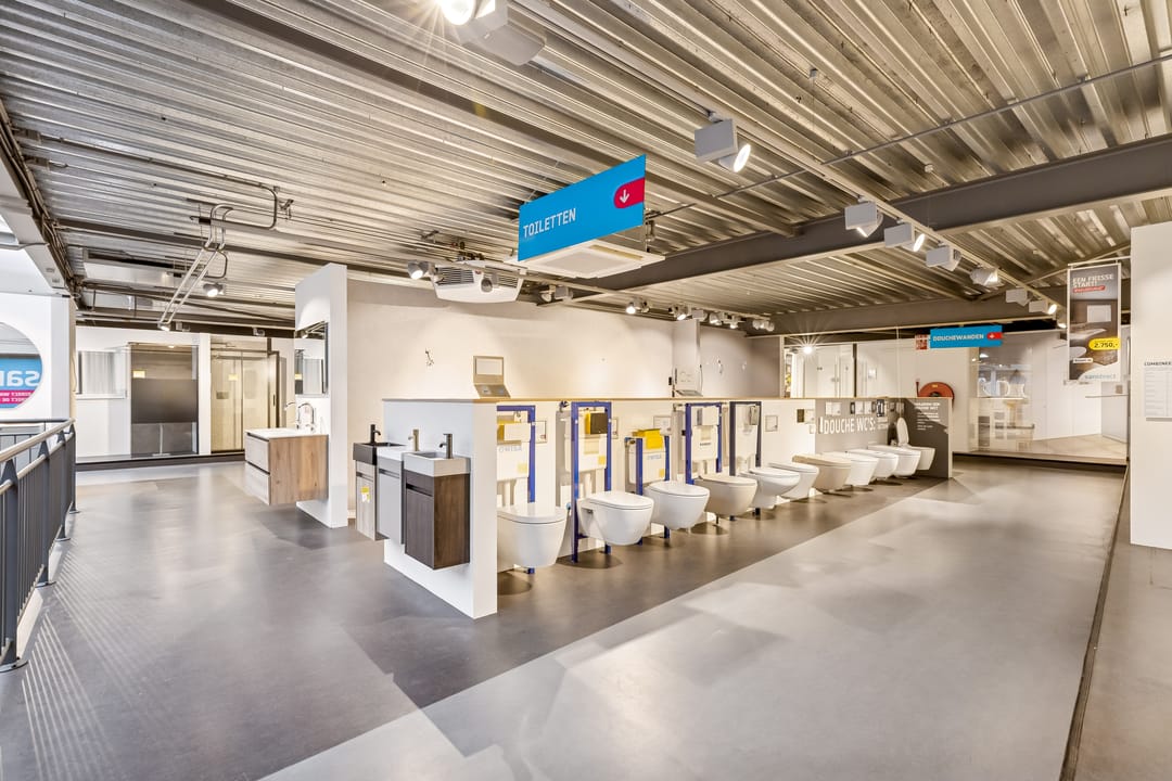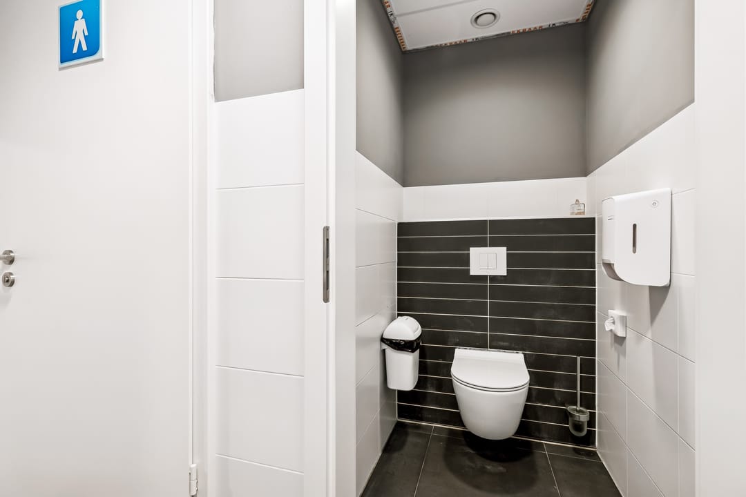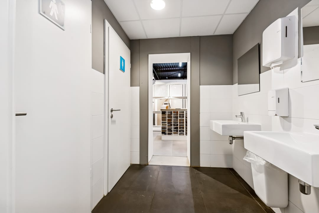 • Gescheiden toiletten M/V + extra urinoir achterin bedrijfsruimte;