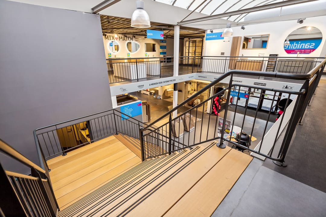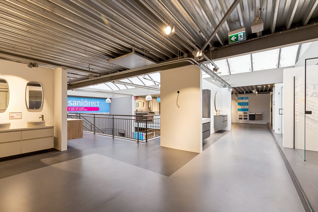 Ca. 300 cm tot onderkant betonvloer in showroom;