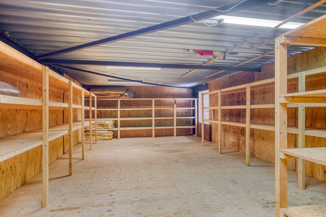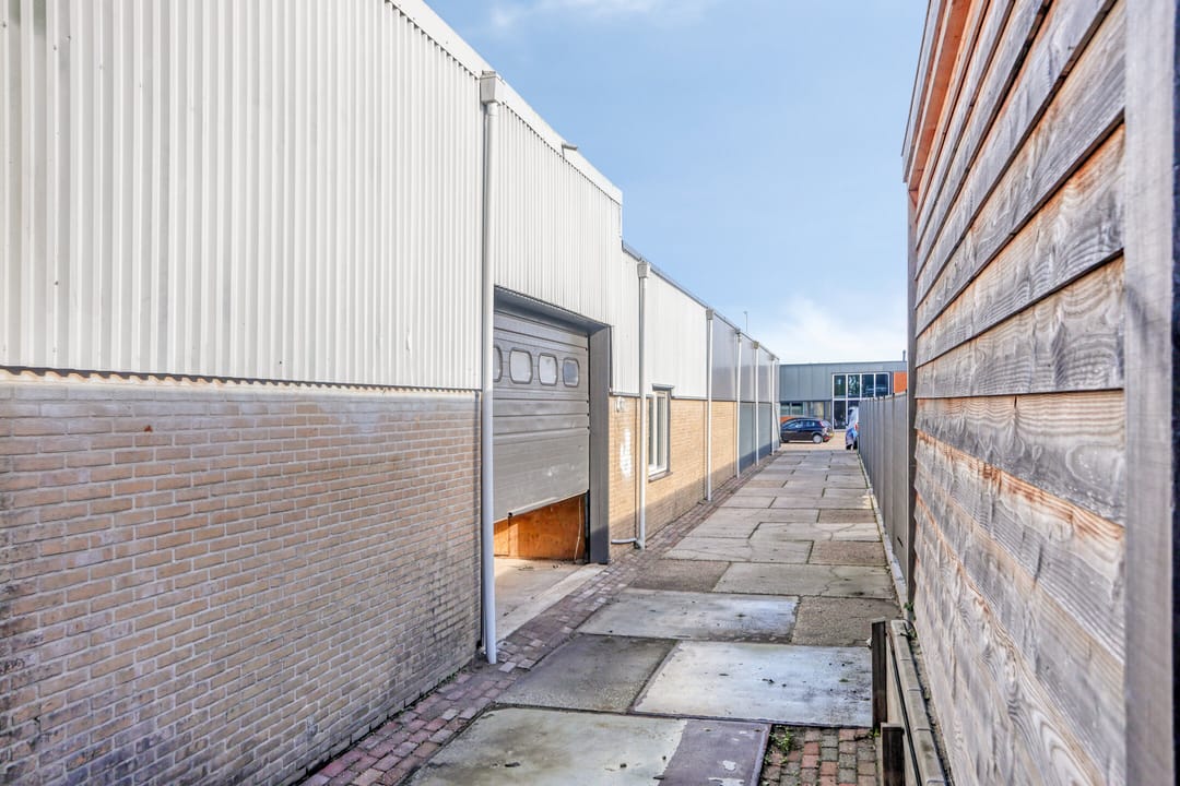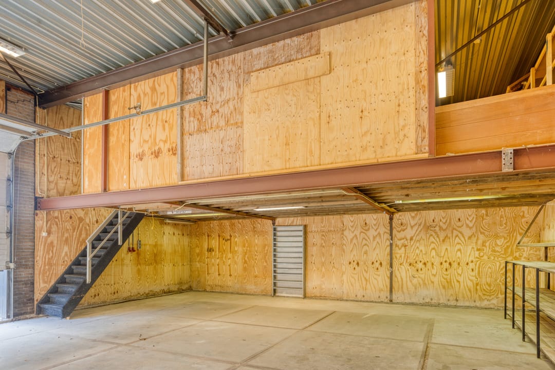 Achter de bedrijfshal is nog een aparte werkplaats gelegen, die buitenom bereikbaar is. In deze open ruimte is een vide die veel opslagmogelijkheden biedt.