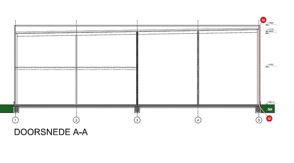 • Gevels bestaande uit sandwichpanelen met 100 mm dikte en een RC van 4,7.