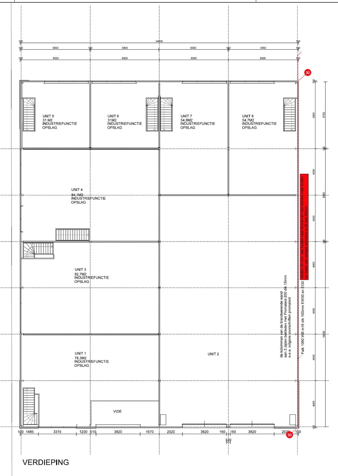 De oppervlaktes variëren van ca. 65 m2 tot en met 240 m2. Iedere unit is voorzien van een overheaddeur.