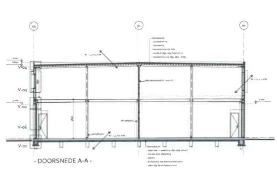 - Gevels: Sandwichpanelen met aluminium kozijnen en HR++ beglazing