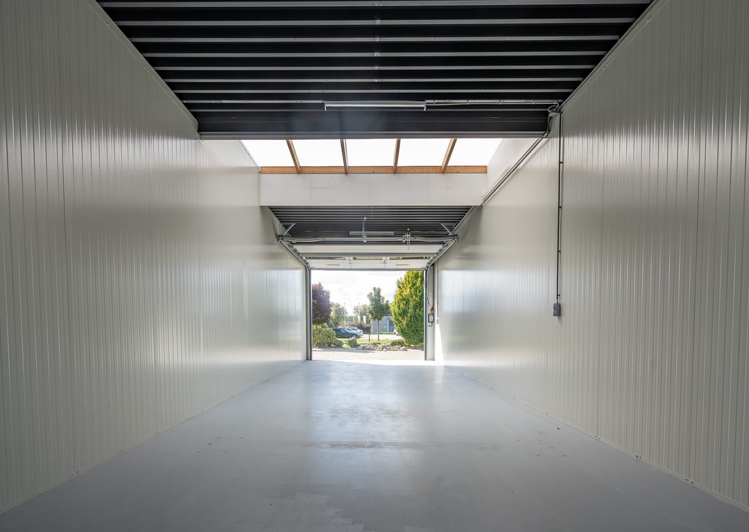 - Lichtstraten, overheaddeuren, krachtstroom, betonvloer, toilet en pantry