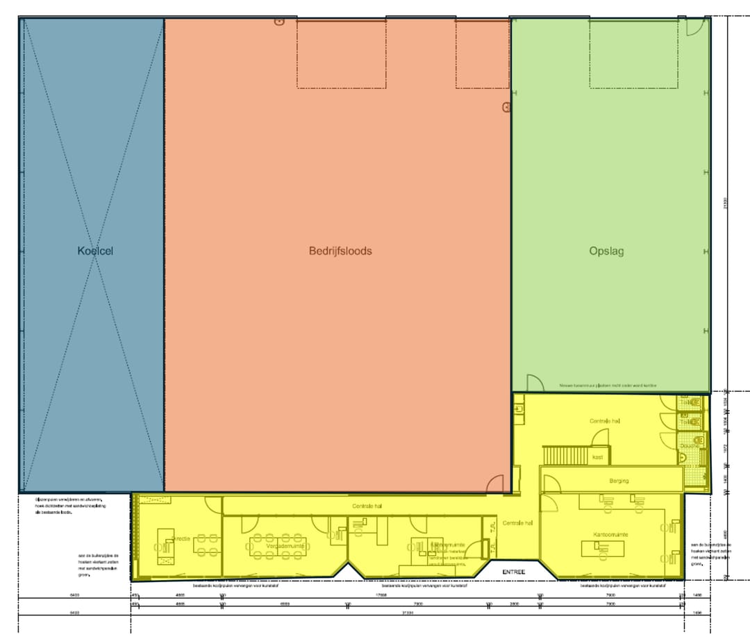 Bedrijfsruimte : ca. 983 m2 VVO (incl. gekoelde ruimte 187 m2)