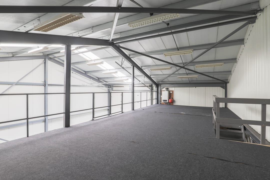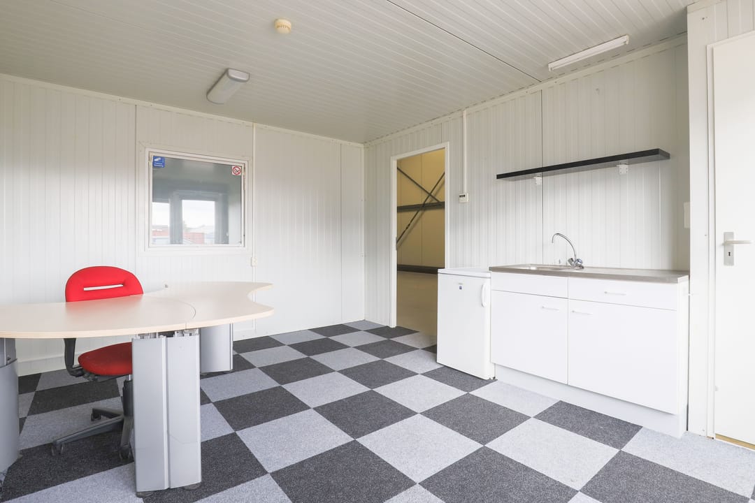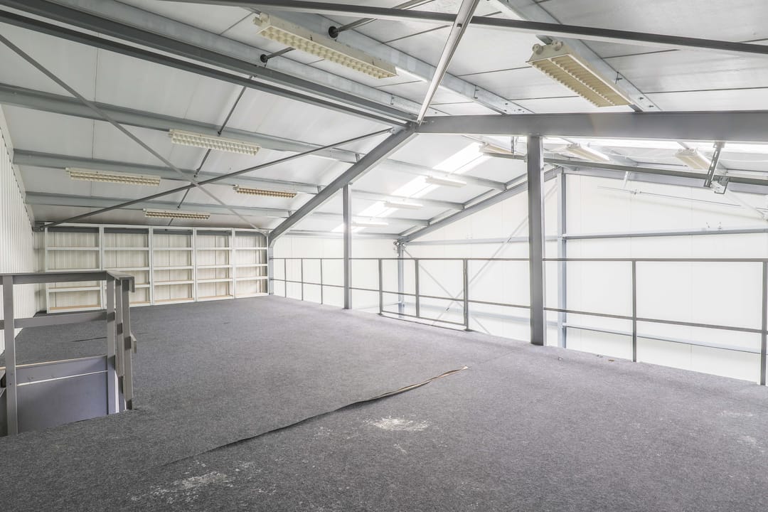 De unit is voorzien van een overheaddeur, loopdeur naar de pantry met kantoorruimte en de bedrijfsruimte. Er is een verdiepingsvloer aanwezig, bereikbaar middels een vaste trap.