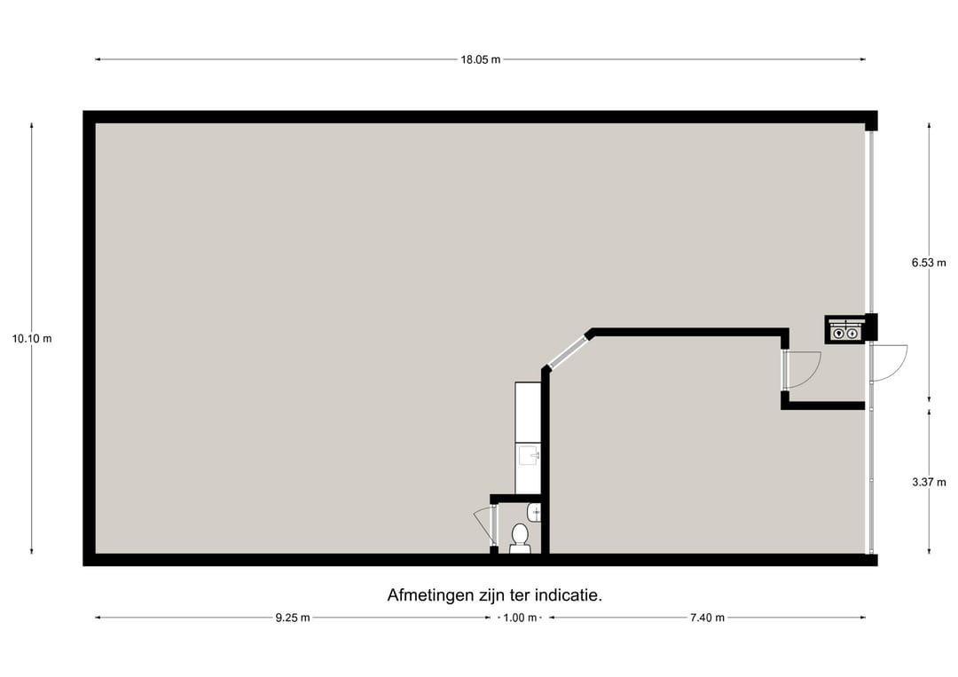De bedrijfsruimte heeft in totaal een oppervlakte van ca. 180 m² en is als volgt ingedeeld: