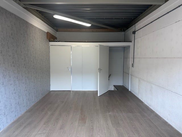 - Overheaddeuren, betonvloer, toilet en pantry
