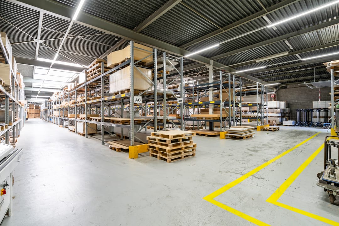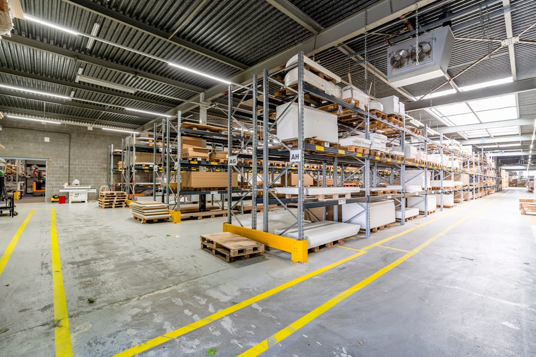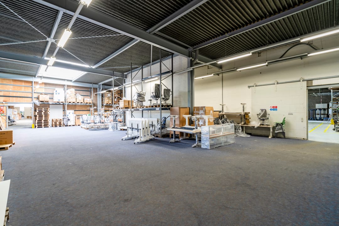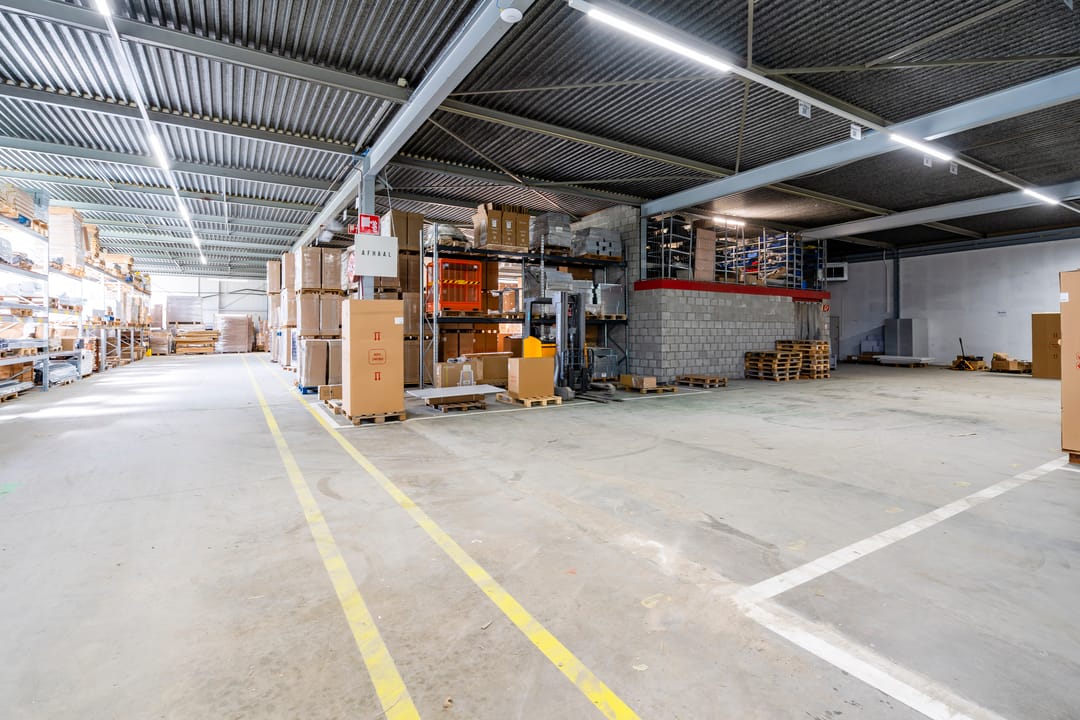 - Lichtstraten, overheaddeuren, betonvloer, toilet en inbouwarmaturen