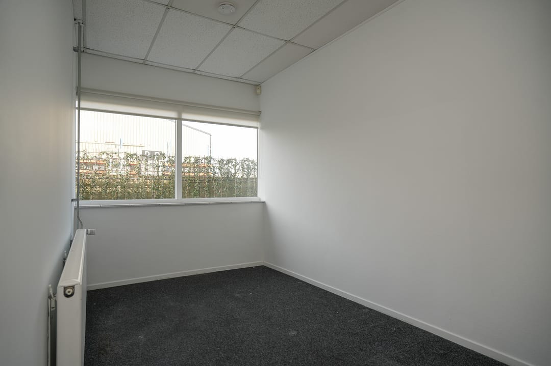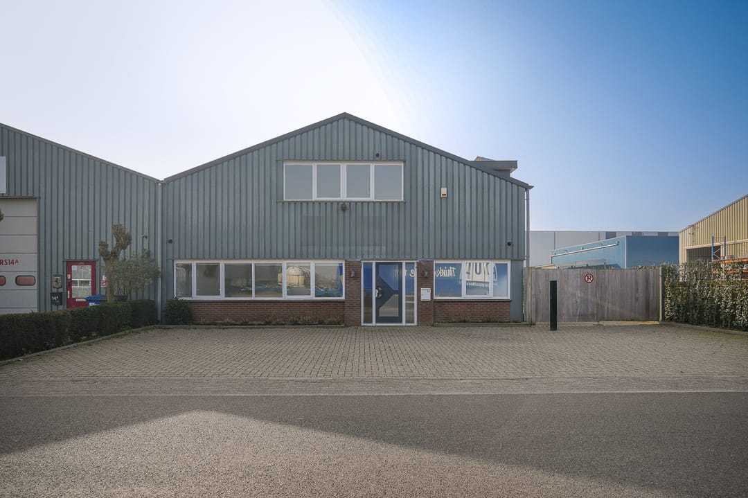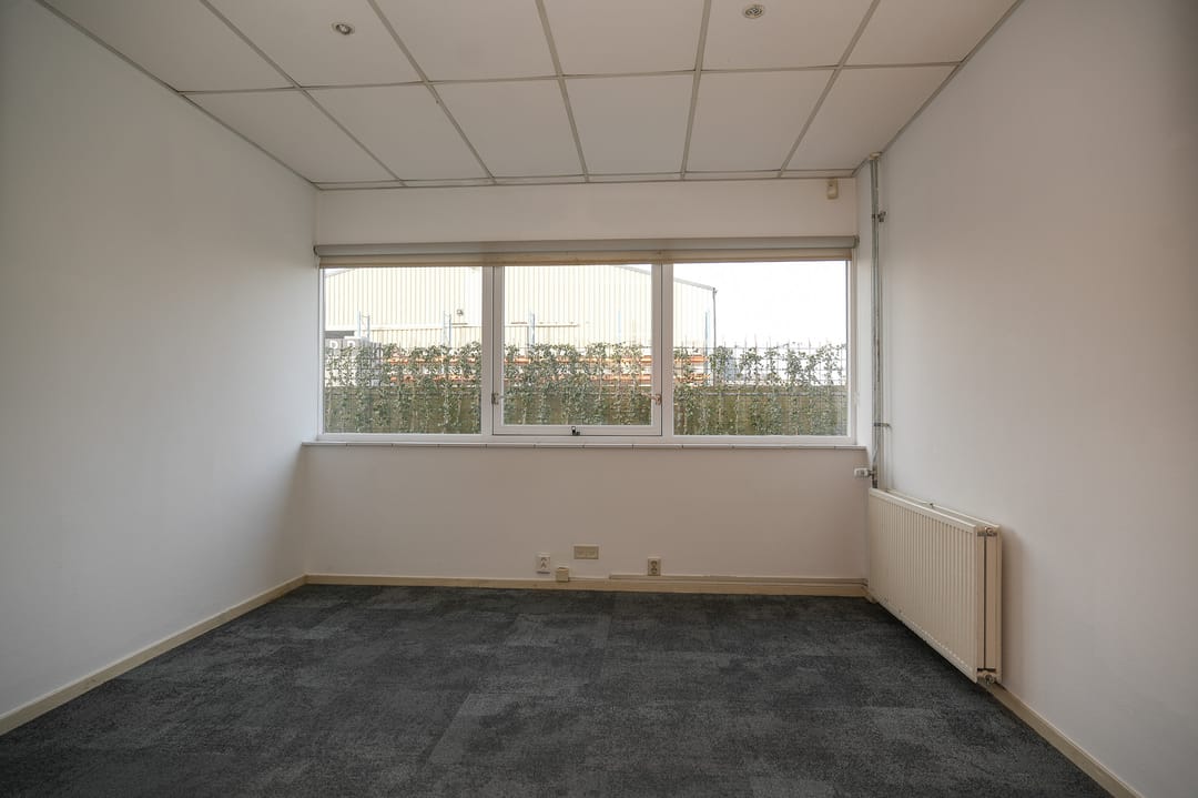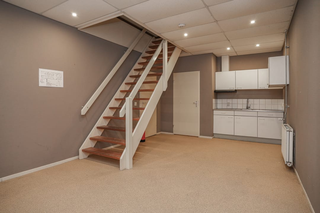 De bedrijfsruimte (hal) op de begane grond is ca. 165 m² VVO groot. Deze is voorzien van een overheaddeur, pantry en deels vloerverwarming. Plafondhoogte 2.28 m.