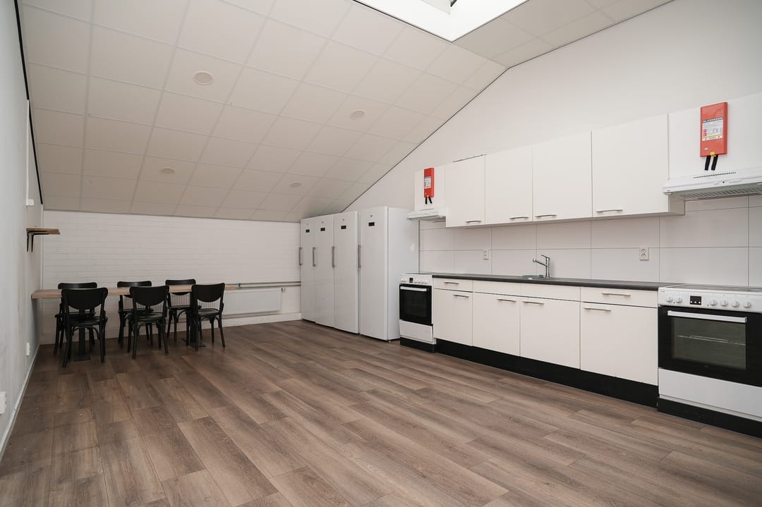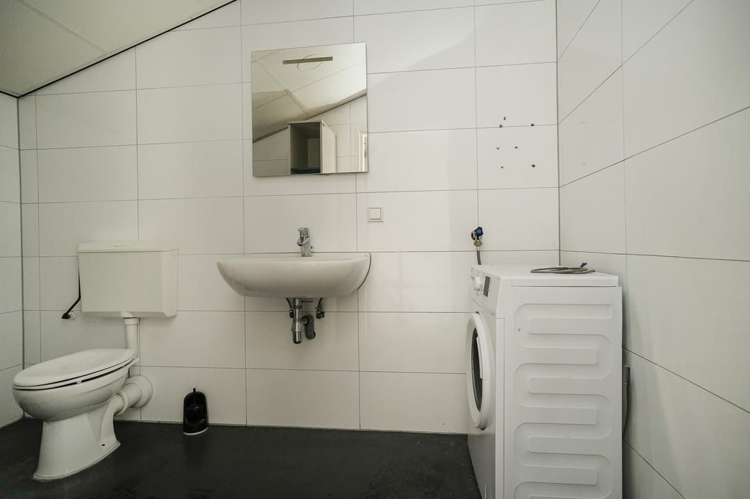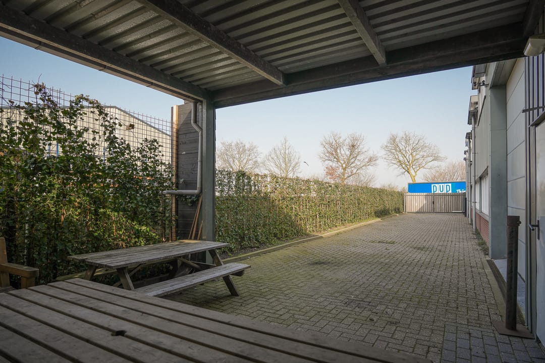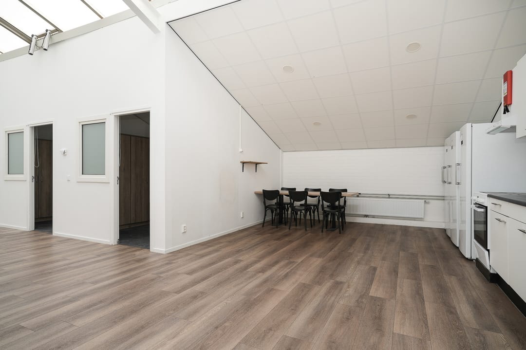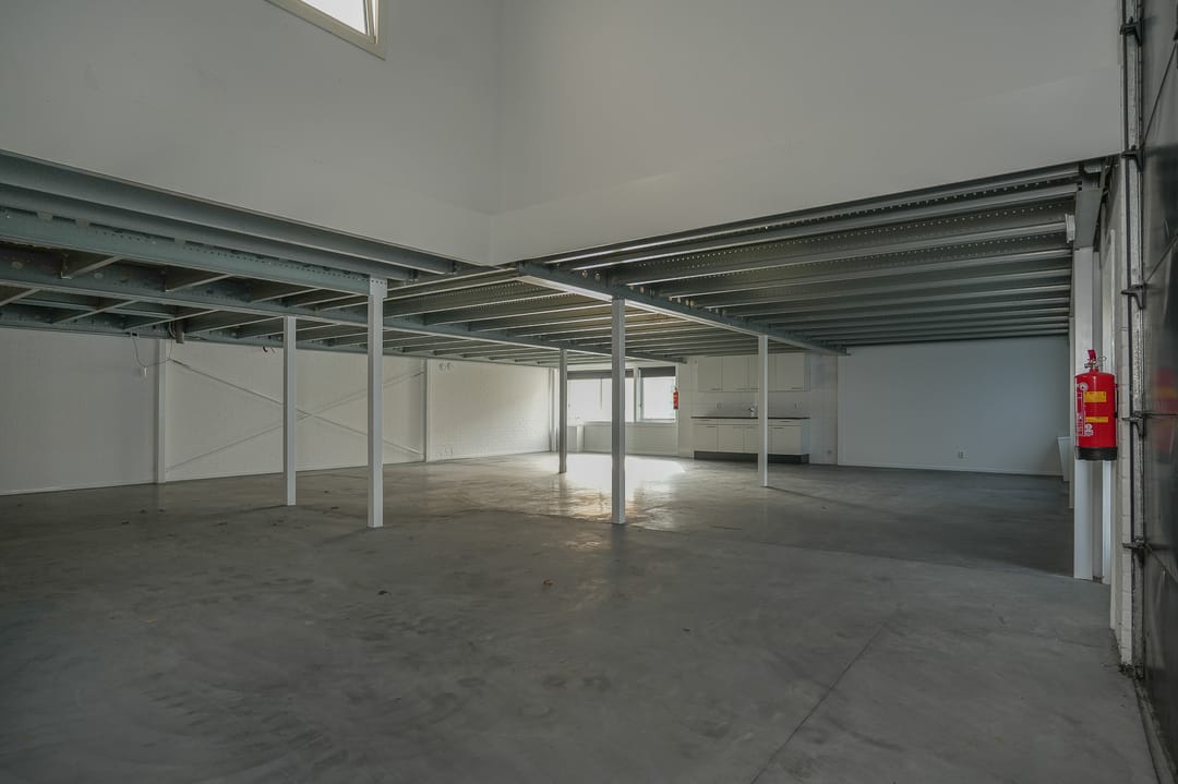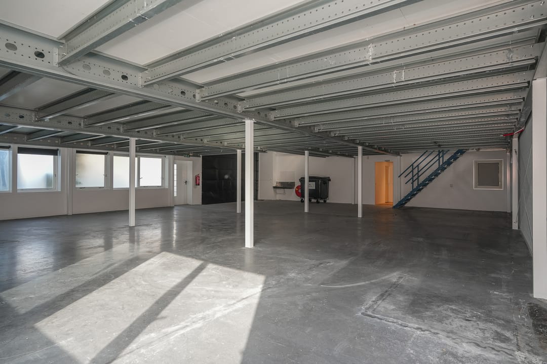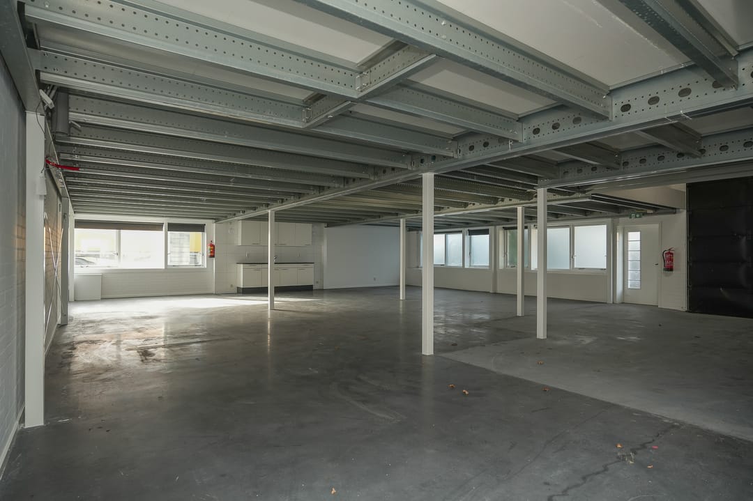 - Overheaddeuren, krachtstroom, betonvloer, toilet, pantry, mechanische ventilatie en te openen ramen