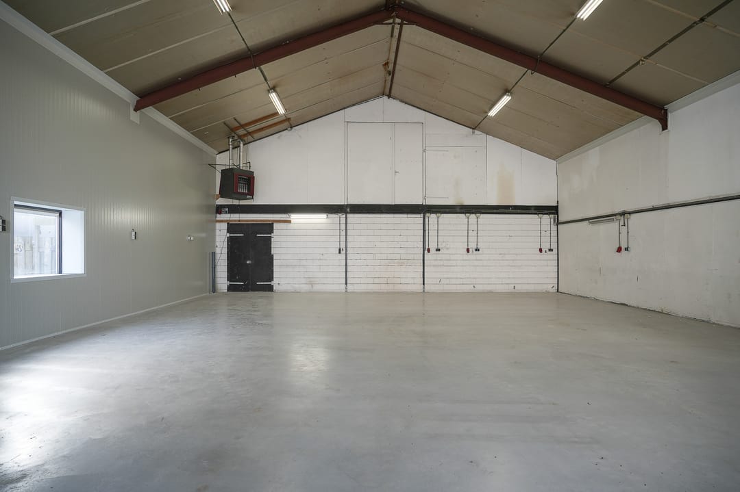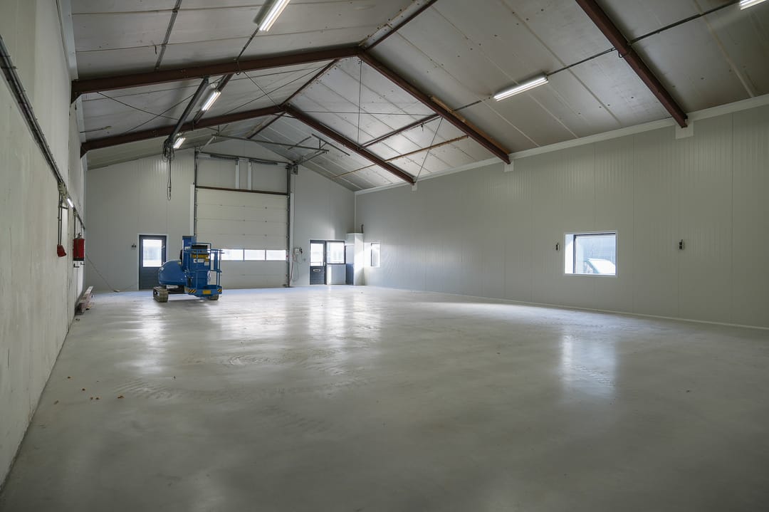 - Overheaddeuren, krachtstroom, betonvloer en heater