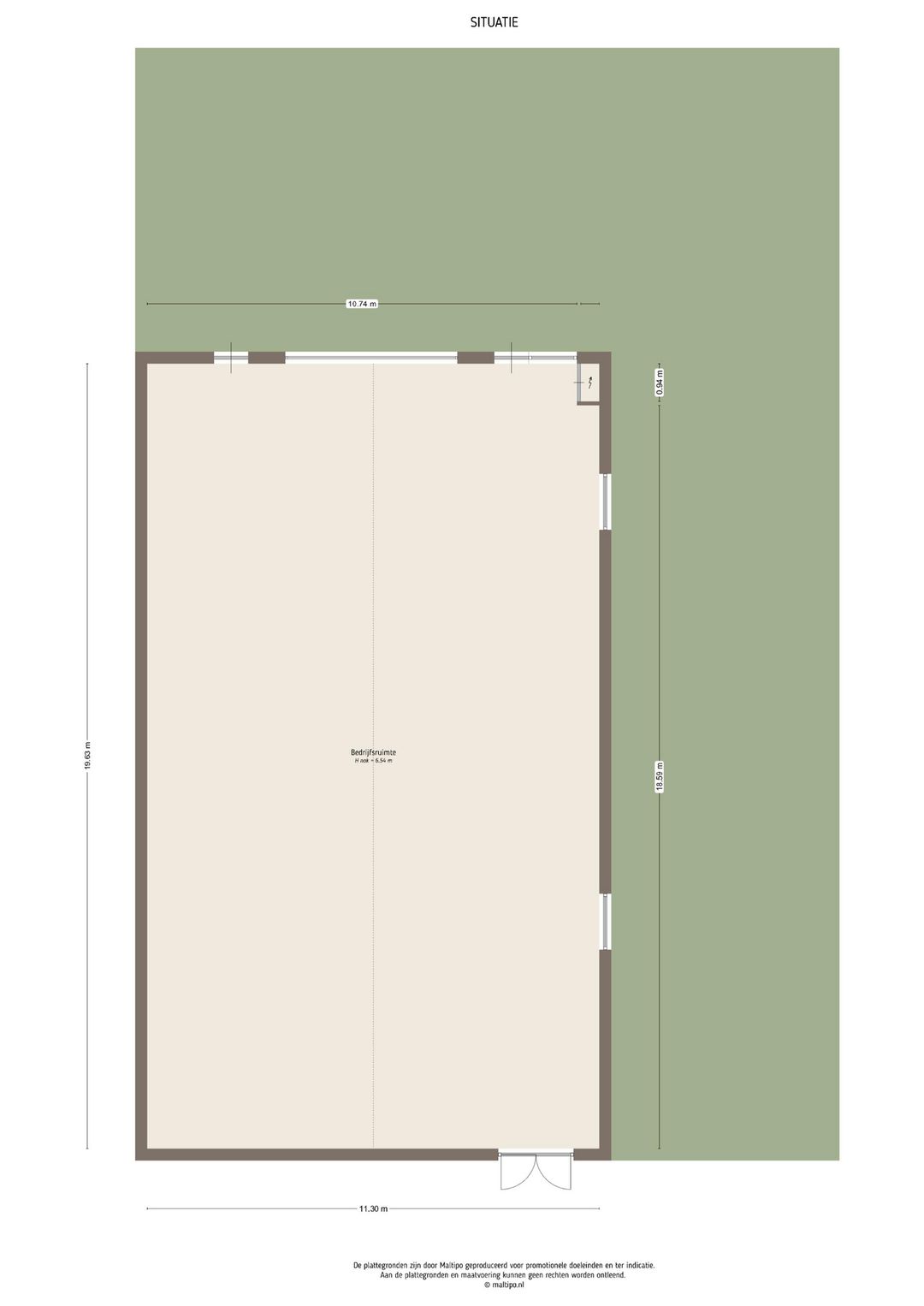 Lengte 19.63 m¹, Breedte 11.30 m¹.