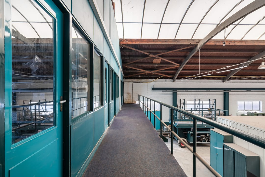 - Lichtstraten, overheaddeuren, krachtstroom, betonvloer, toilet, pantry, inbouwarmaturen en te openen ramen