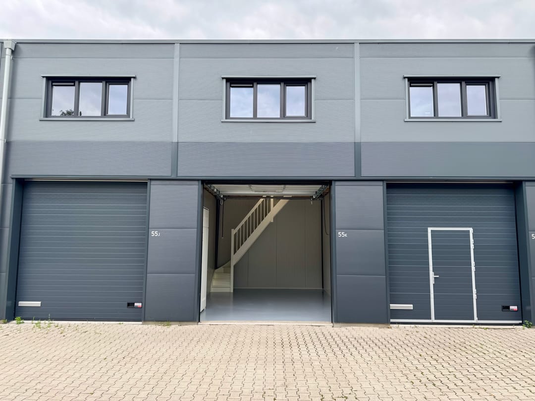 - Overheaddeuren, krachtstroom, betonvloer, toilet, pantry, airconditioning en te openen ramen