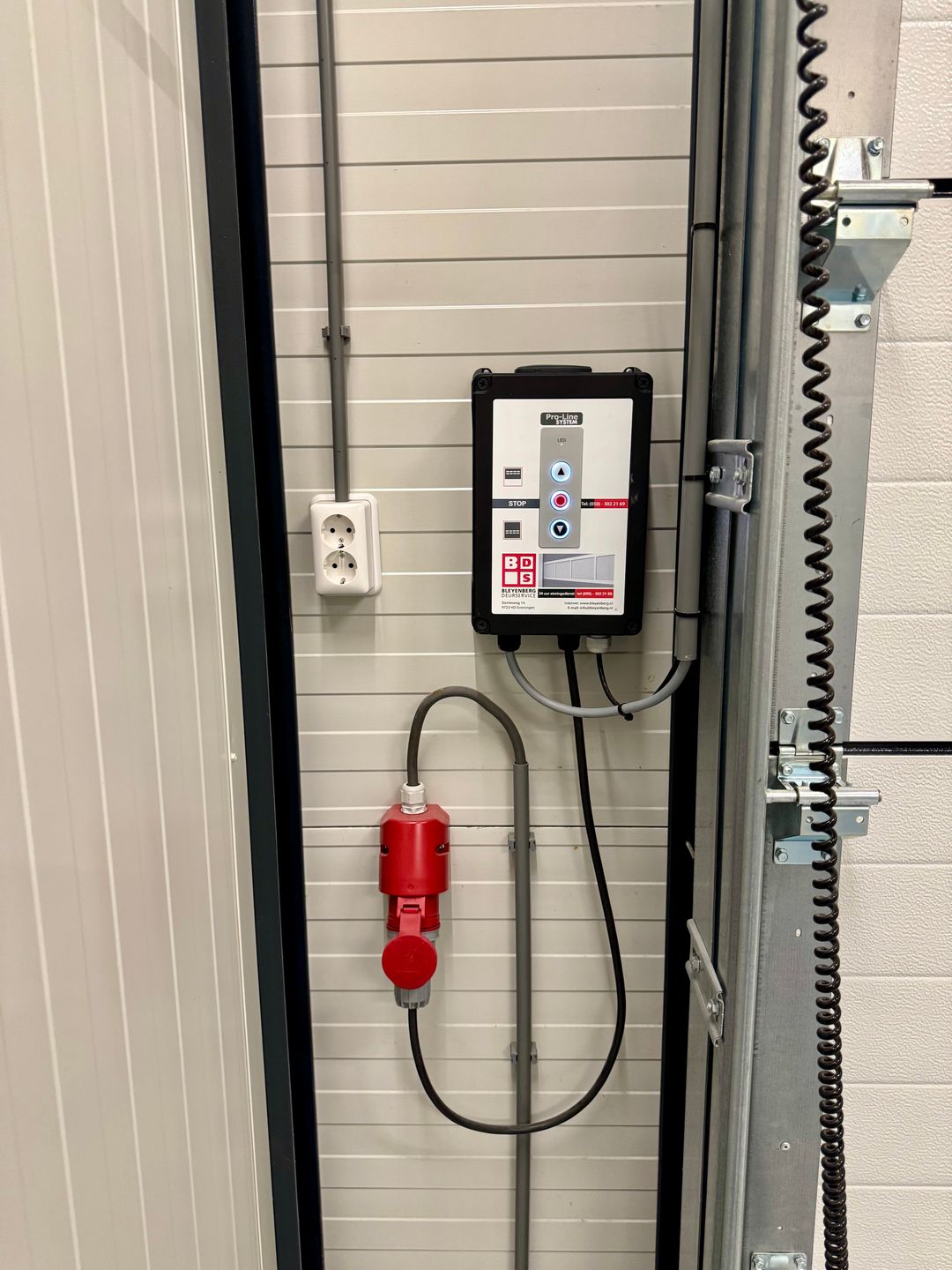 - Voorzien van een elektrische overheaddeur en een loopdeur.
