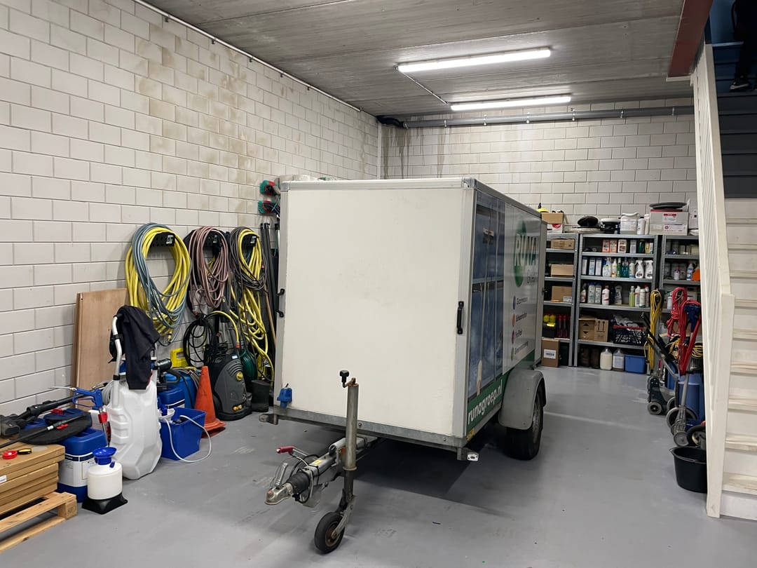 - Overheaddeuren, krachtstroom, betonvloer en te openen ramen