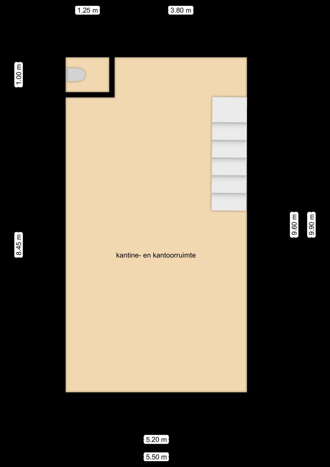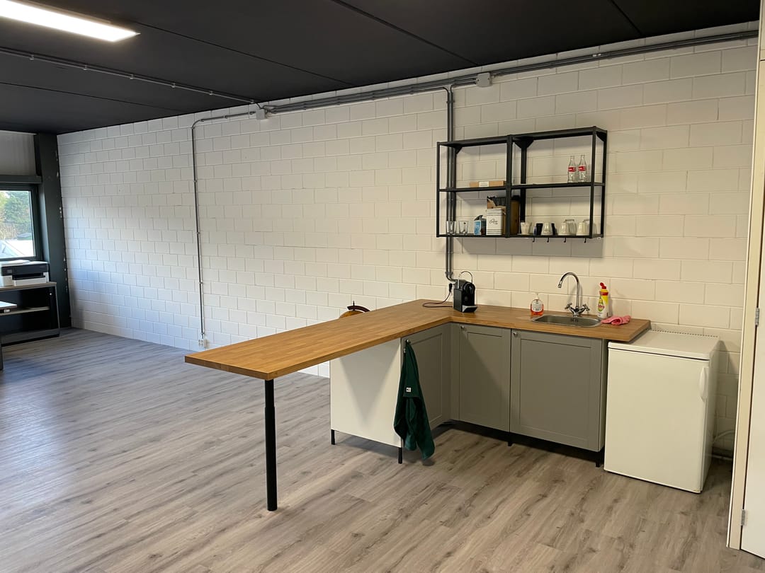 Op de eerste verdieping bevindt zich circa 50 m² aan kantine- en kantoorruimte met een vrije hoogte van 2,85 meter. De ruimte is voorzien van een pantry en biedt een nette en functionele werkomgeving. Zowel op de begane grond en op de 1e verdieping is een airco unit die kan koelen en verwarmen geplaatst.