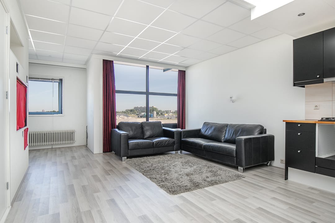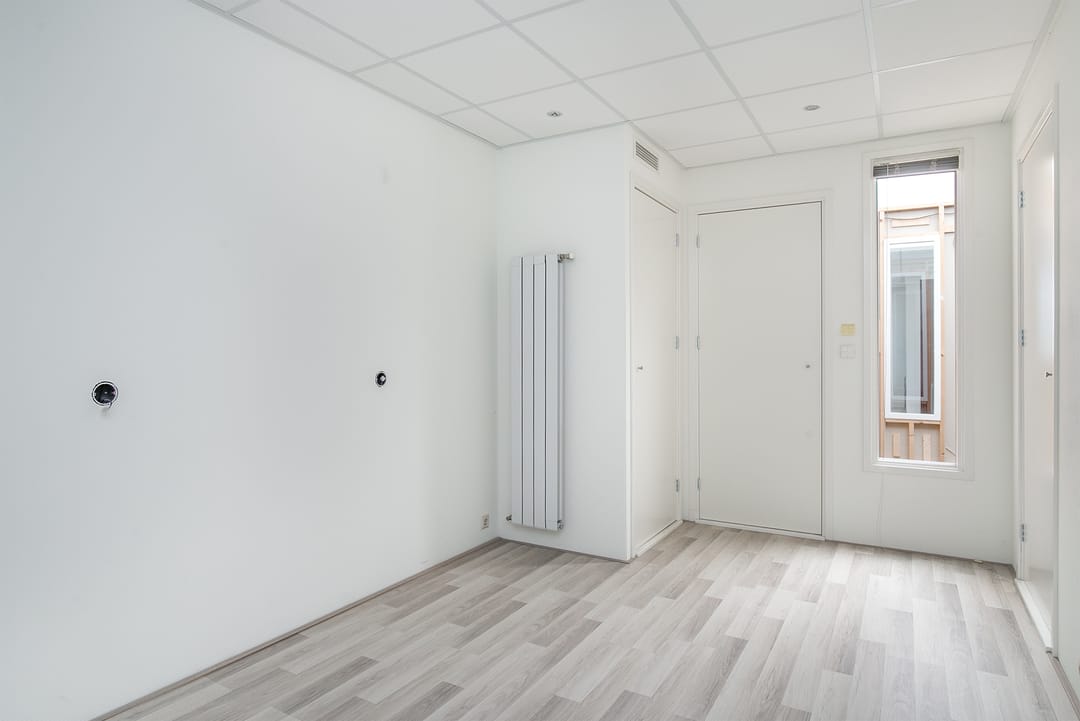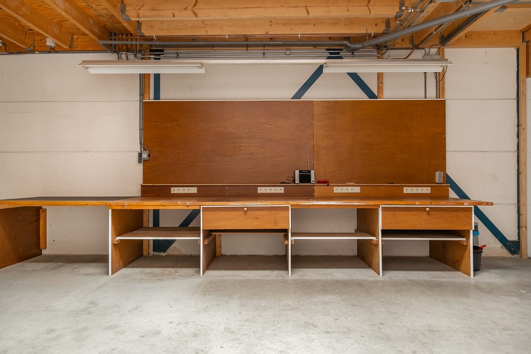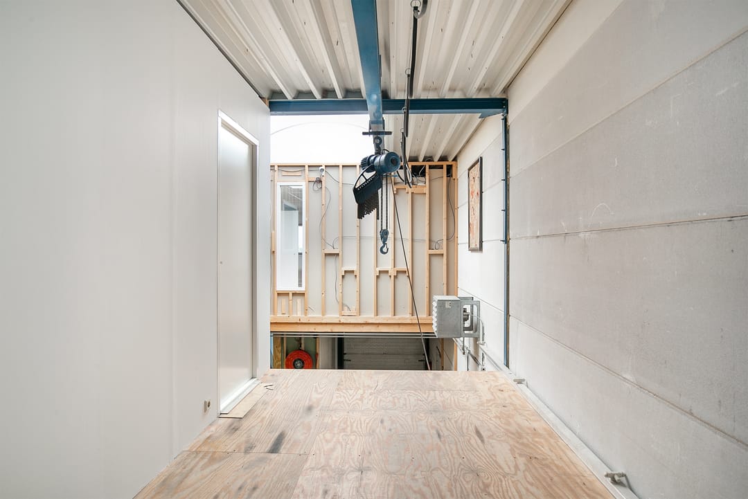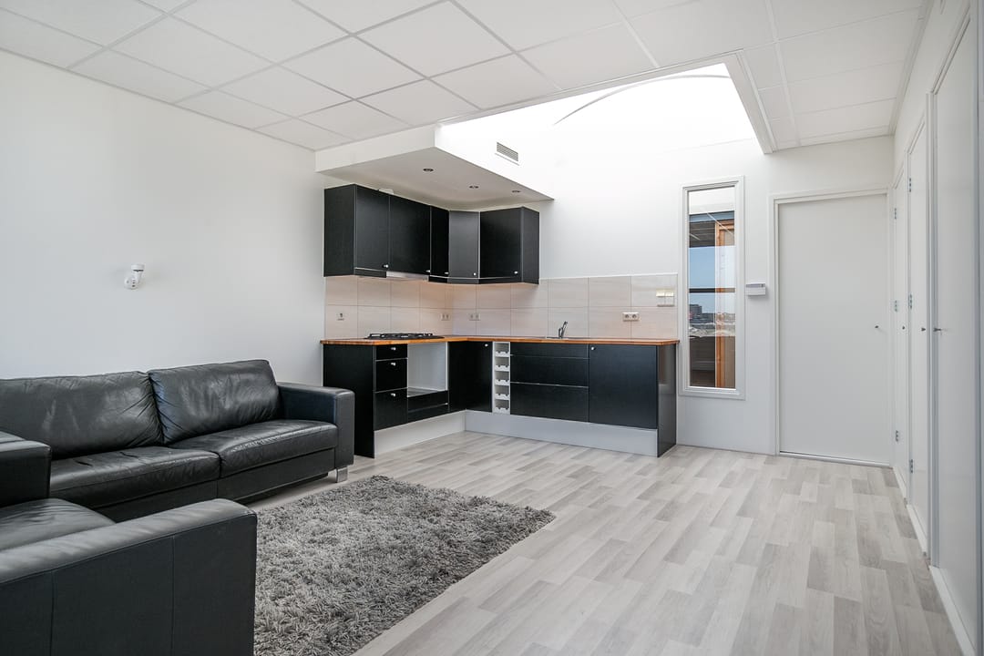 De bedrijfsruimte op de begane grond beslaat circa 76 m² en is voorzien van een loopkat met elektrische kettingtakel, ideaal voor uiteenlopende werkzaamheden of opslagdoeleinden. Op de eerste verdieping bevindt zich een verzorgd kantoorgedeelte, geschikt als werkplek of aanvullende opslagruimte.