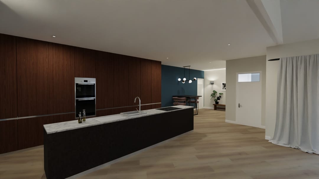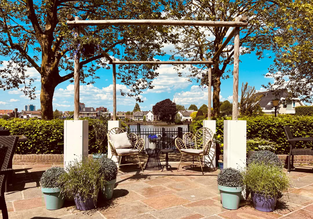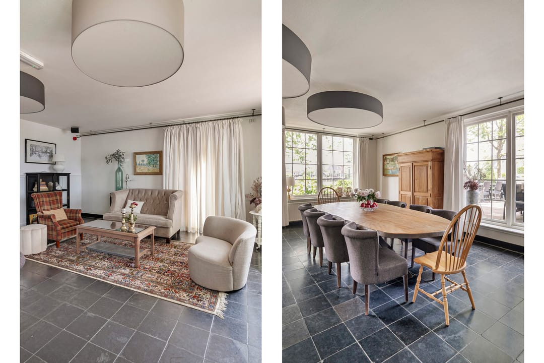 De linkervleugel heeft wel een plafond, in deze vleugel is de professionele keuken gebouwd, met daarachter een mooie kamer/serre. Vanuit alle ruimtes heeft u uitzicht op de Hollandsche IJssel.