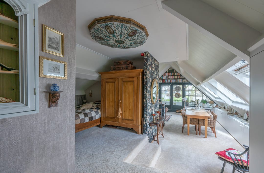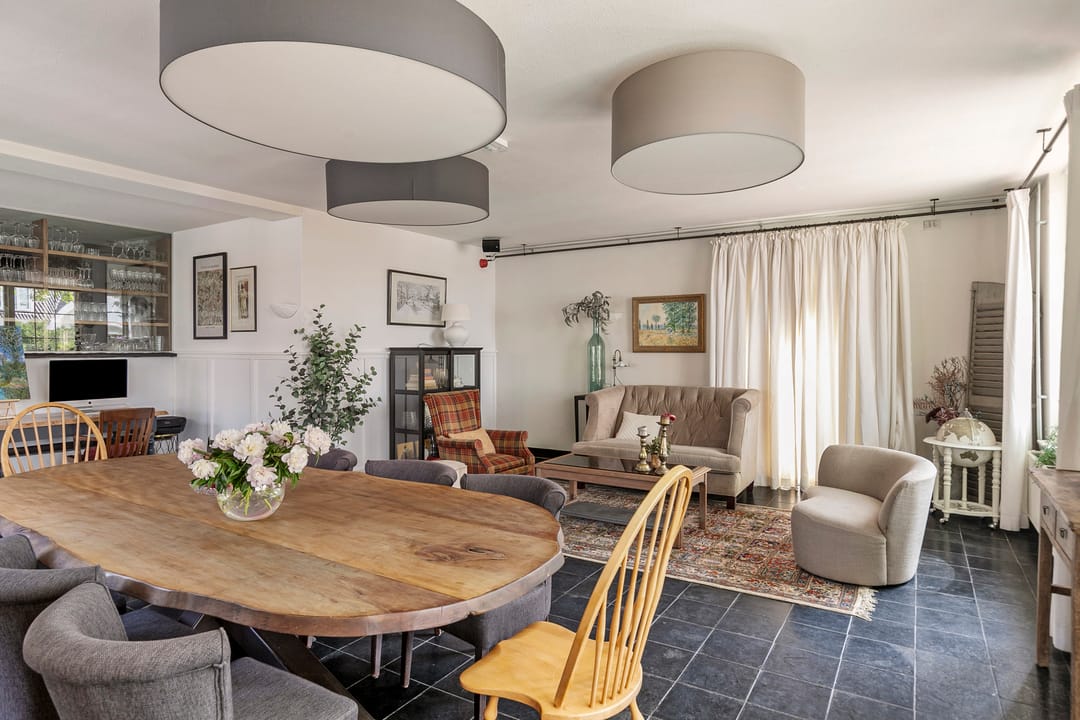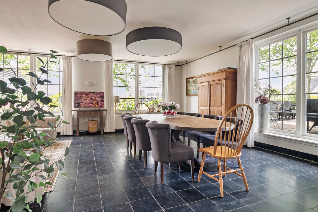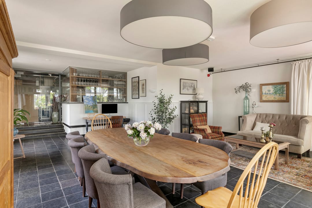 De rechtervleugel is een open ruimte waarbij u tot in de nok kunt kijken, wat een zeer ruimtelijk effect geeft mede door de vele raampartijen.